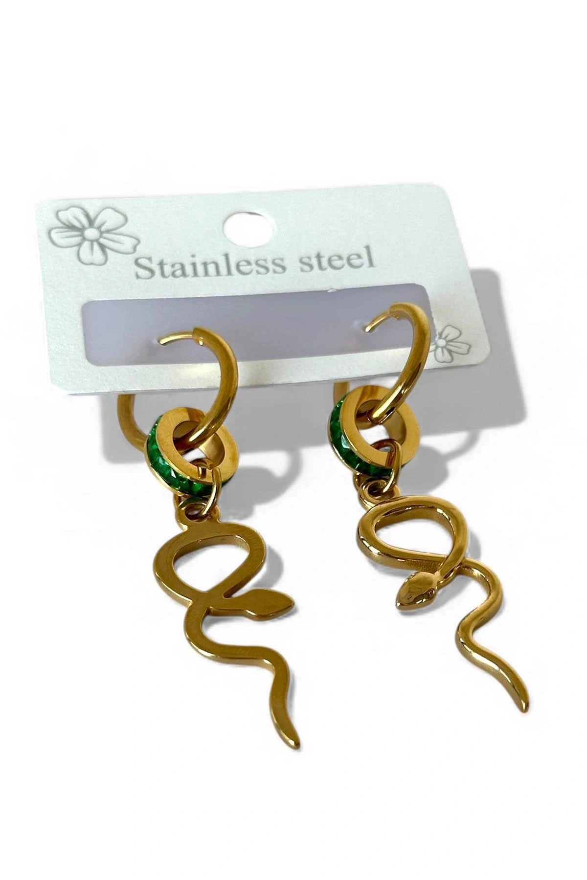 Altın Renk Yılan Figürlü Çelik Küpe (Çift)