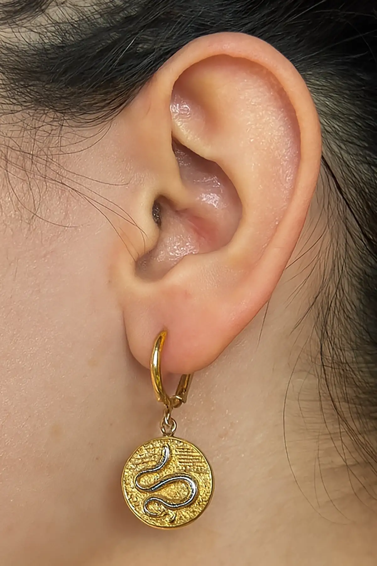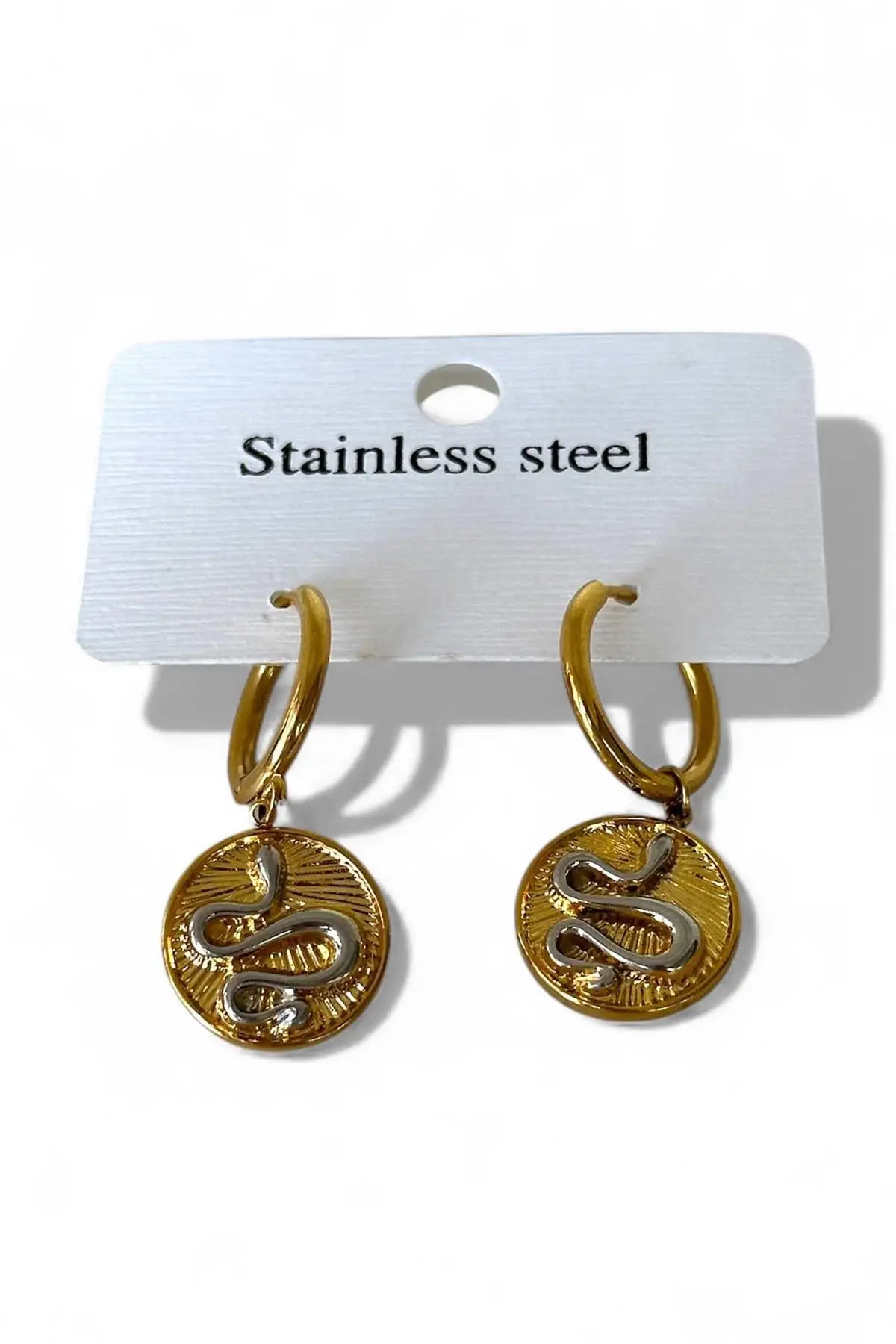 Altın Renk Yılan Figürlü Çelik Küpe (Çift)