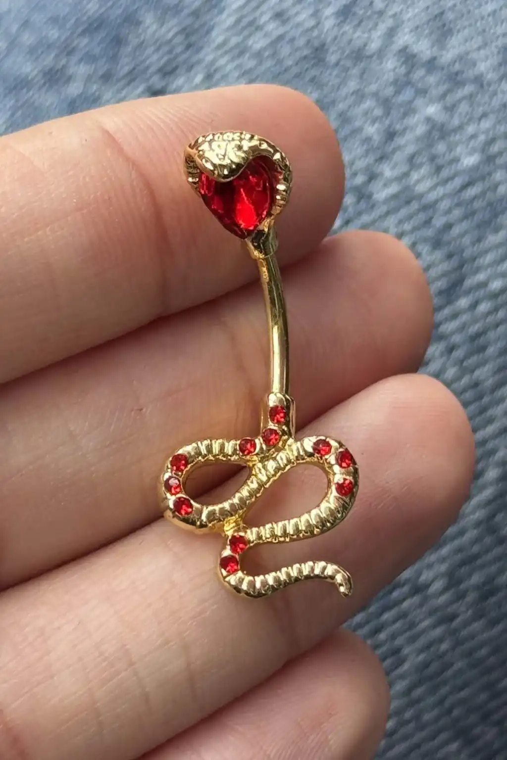 Altın Renk Yılan Figürlü Cerrahi Çelik Göbek Piercing
