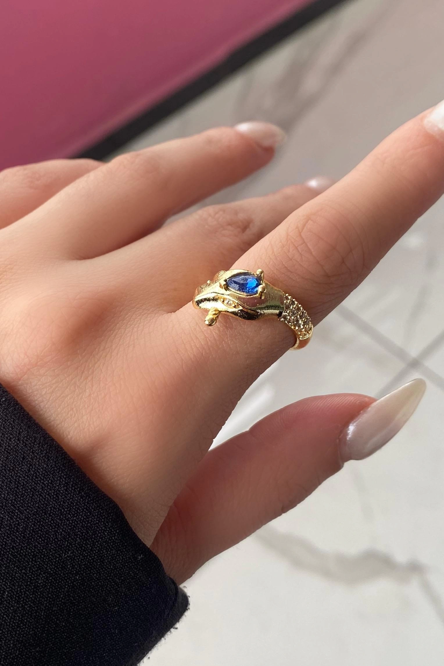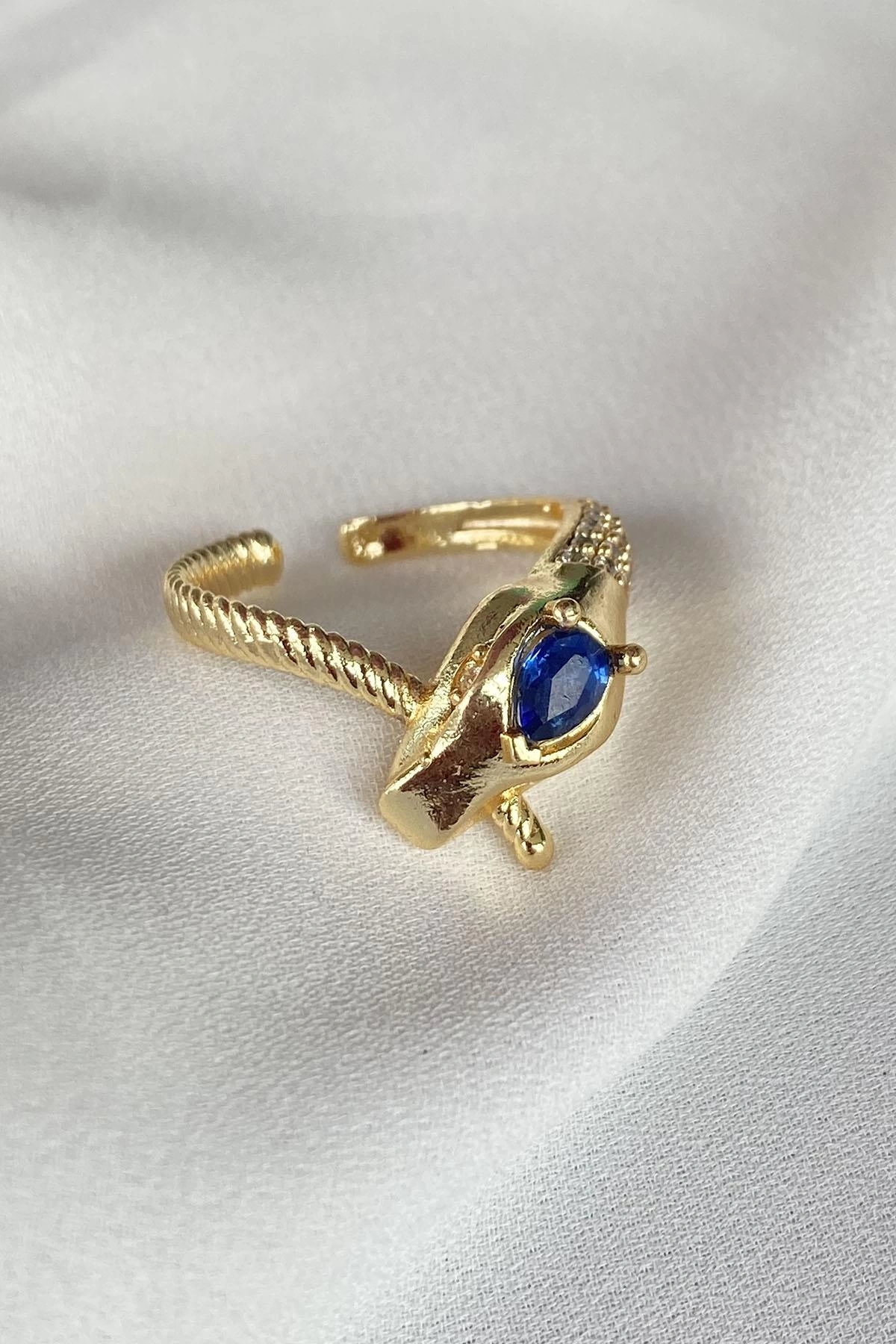 Altın Renk Yılan Figürlü Mavi Taş Detaylı Ayarlanabilir Yüzük
