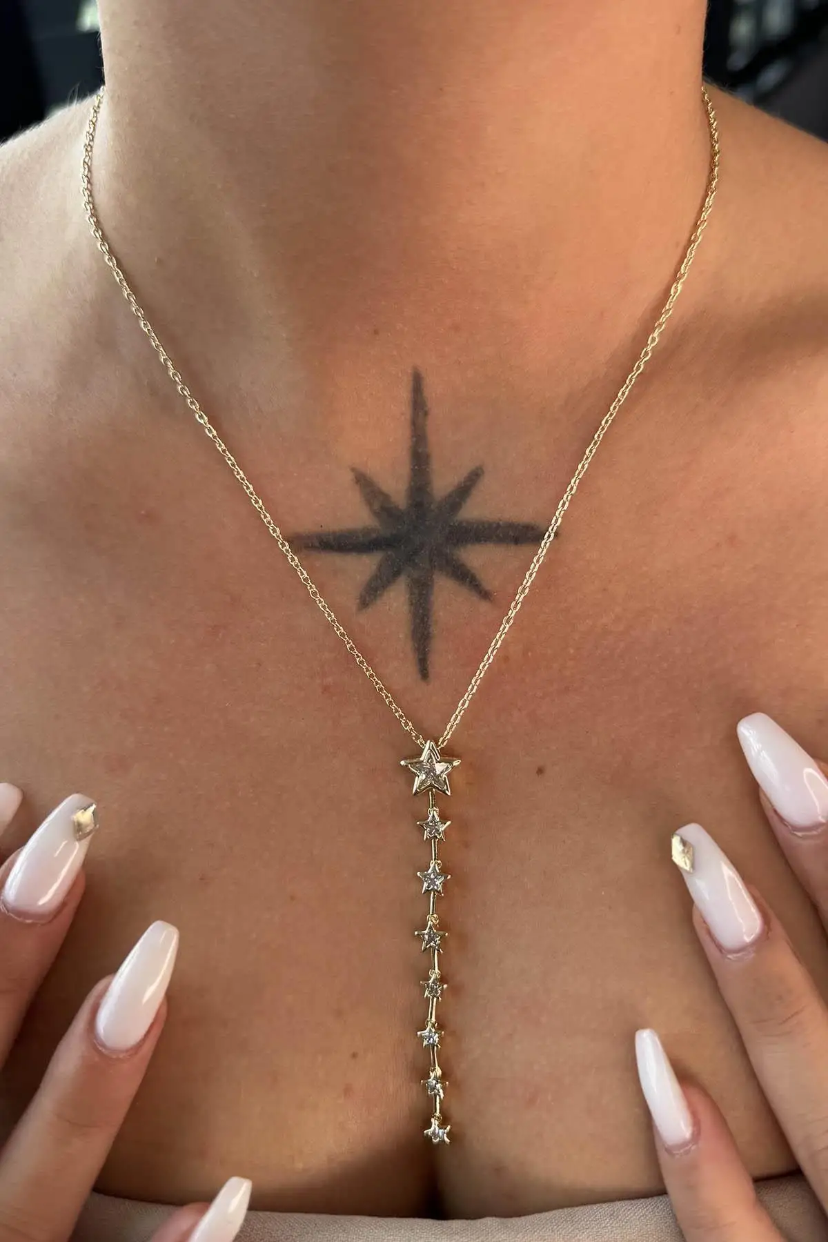 Altın Renk Yıldız Figürlü Taş Detaylı Kolye