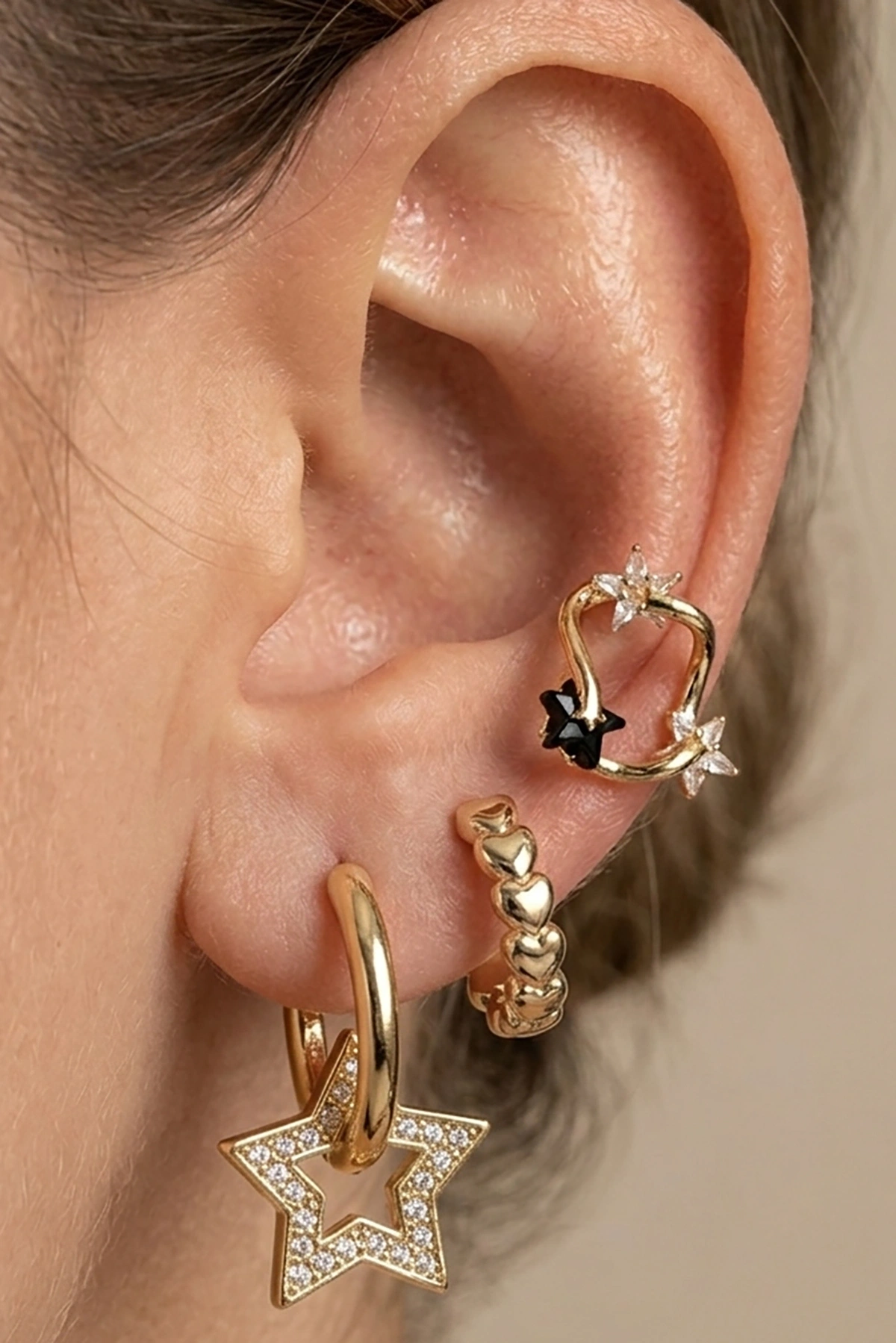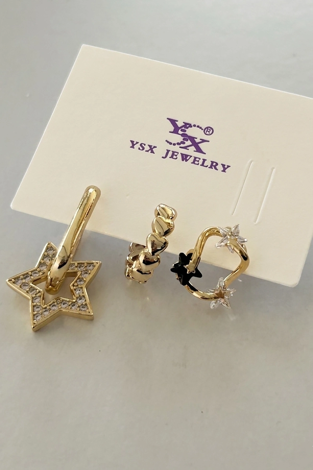 Altın Renk Yıldız Figürlü 3'lü YSX Küpe Set