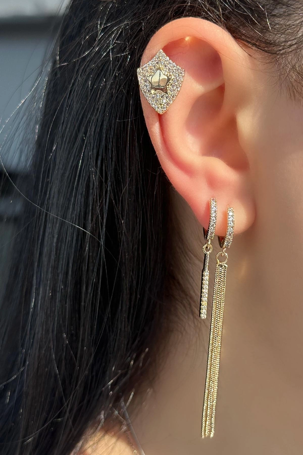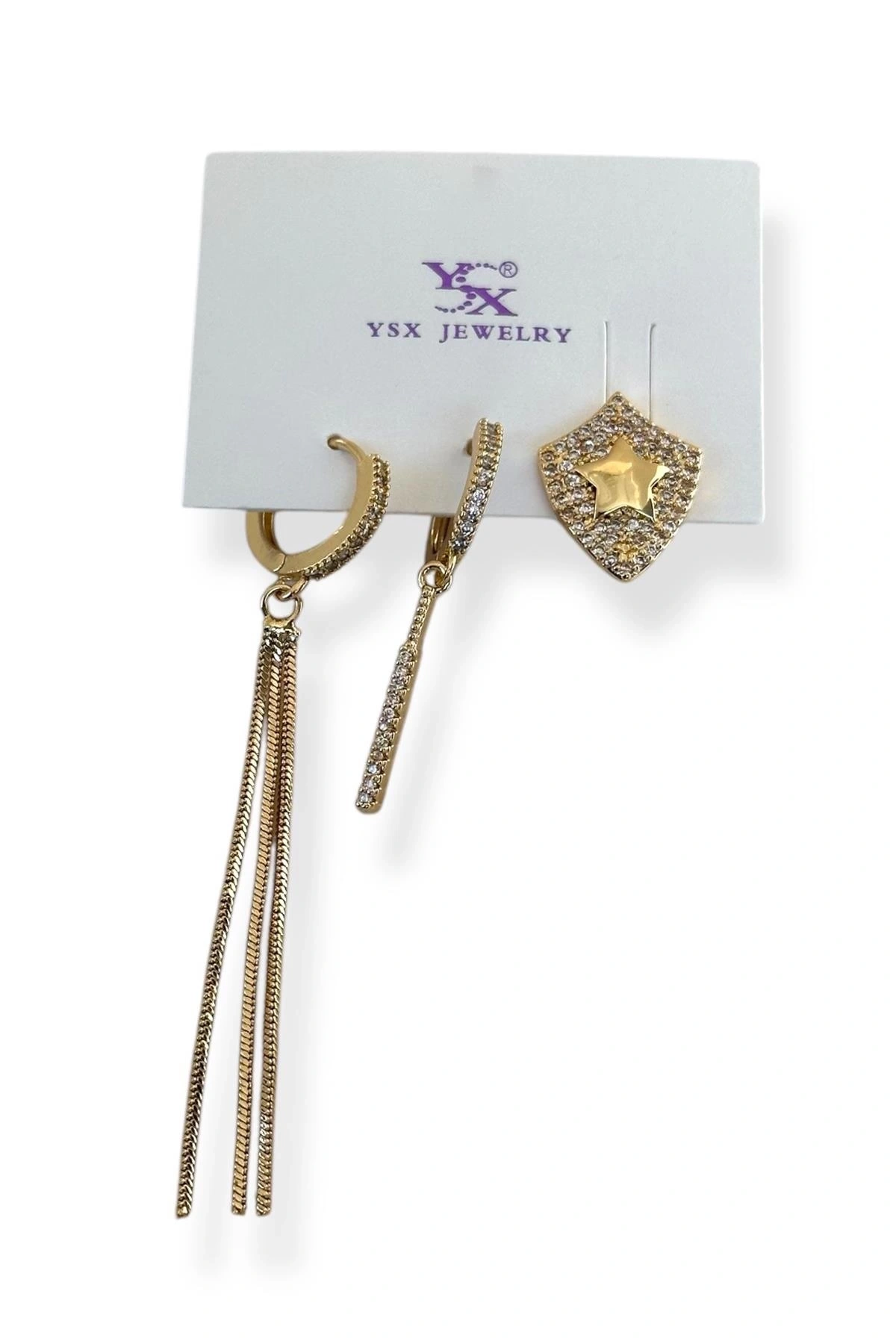 Altın Renk Yıldız Figürlü 3'lü YSX Küpe Set