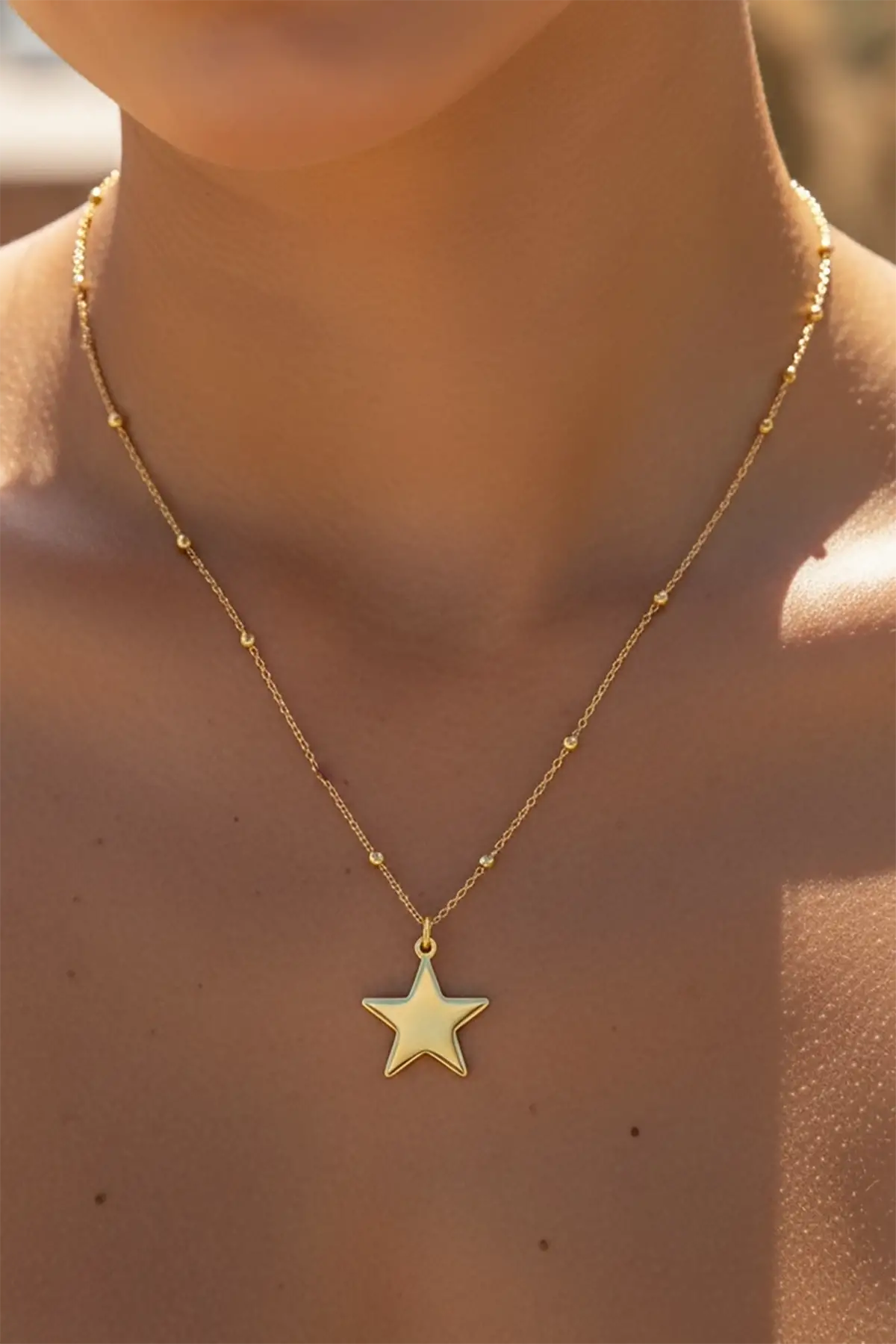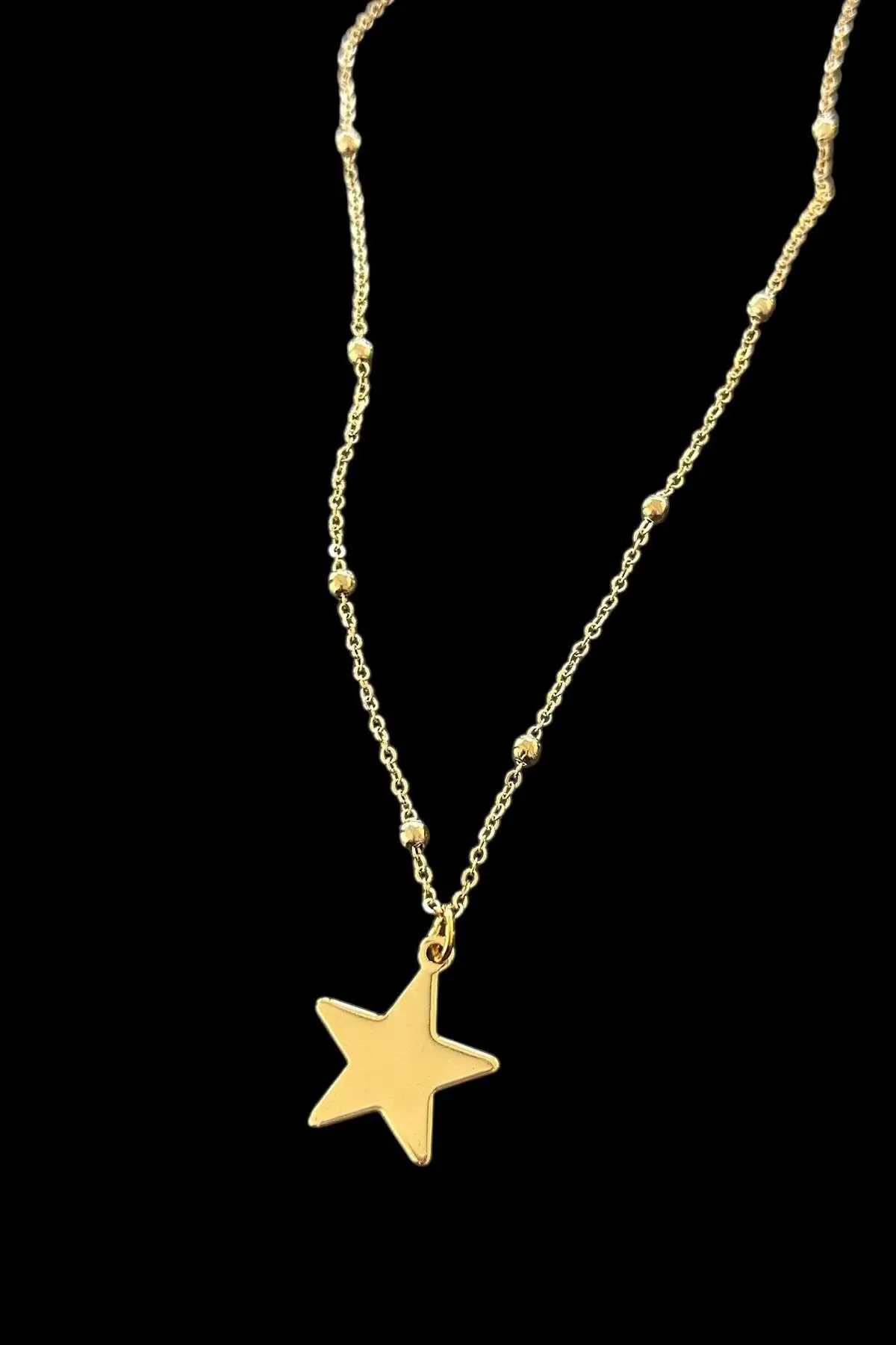 Altın Renk Yıldız Figürlü Çelik Kolye