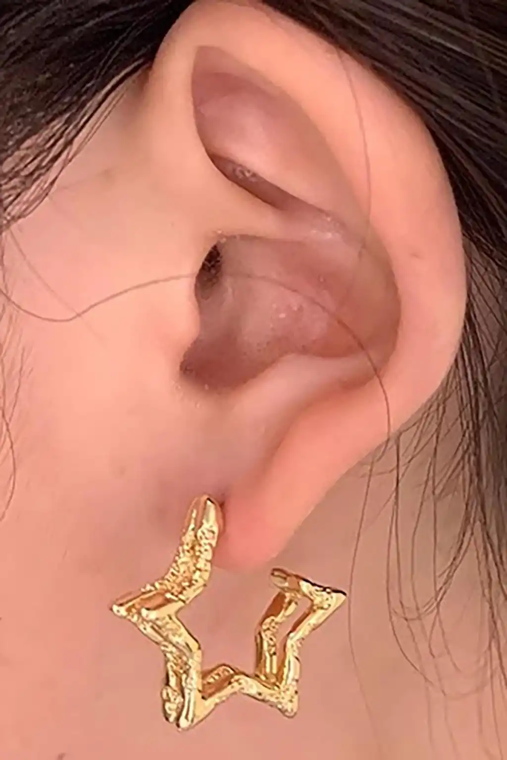 Altın Renk Yıldız Figürlü Çelik Küpe (Çift)