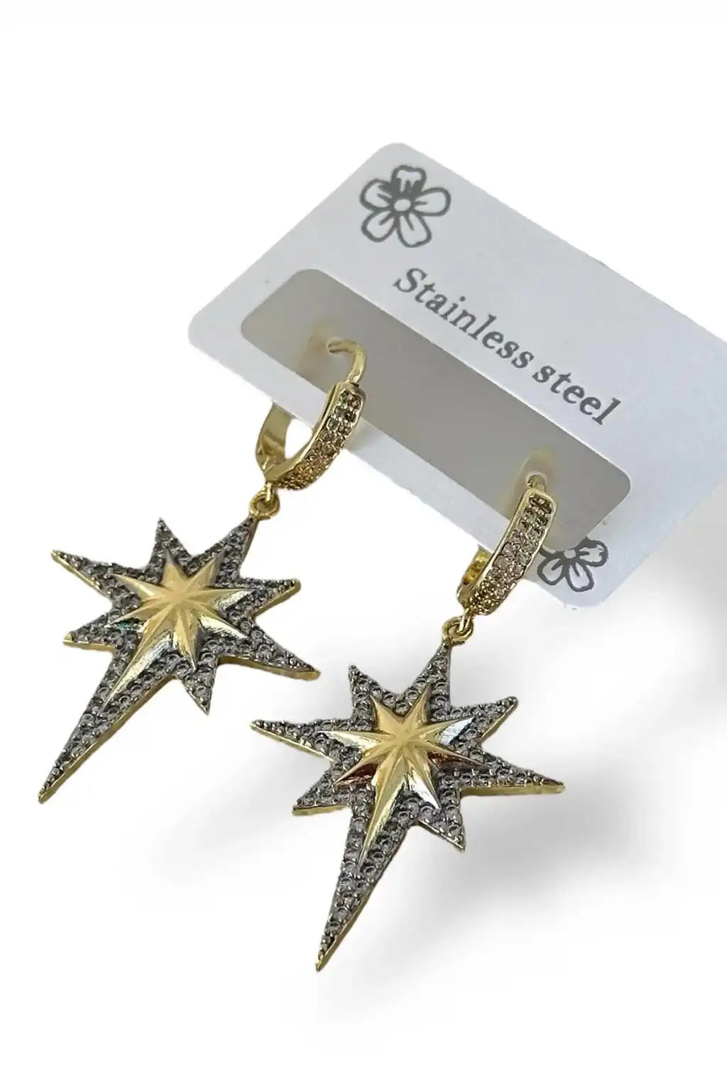 Altın Renk Yıldız Figürlü Çelik Küpe (Çift)