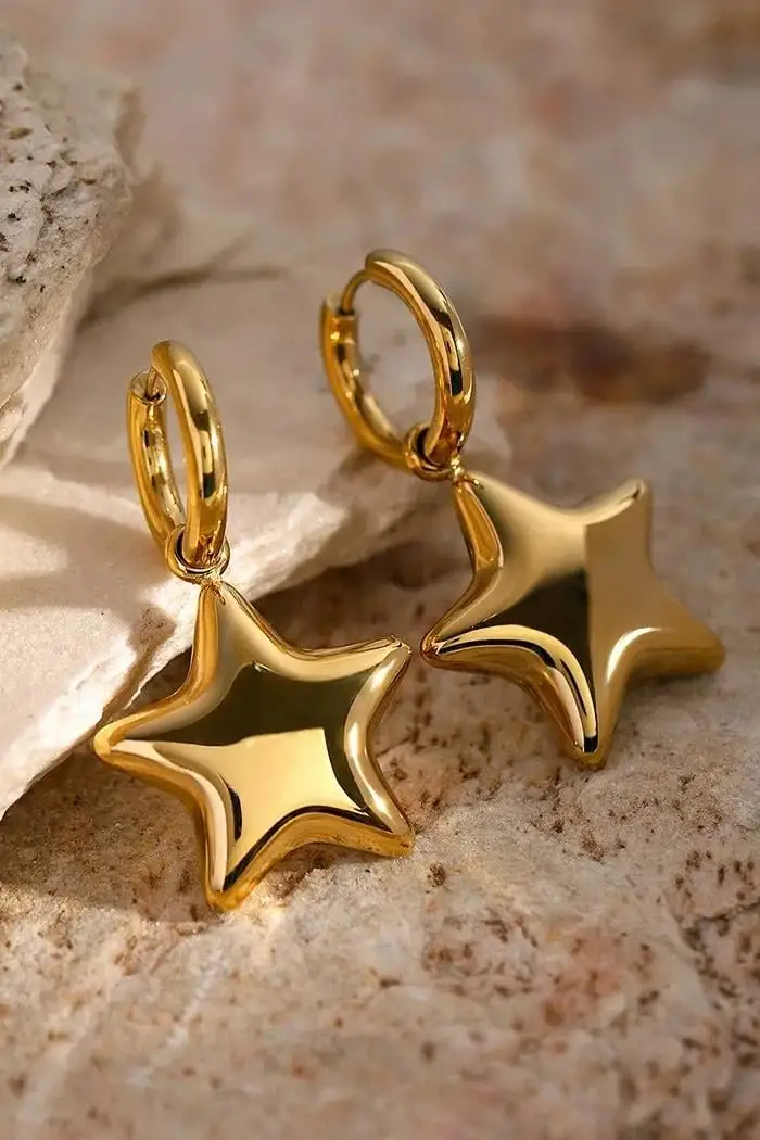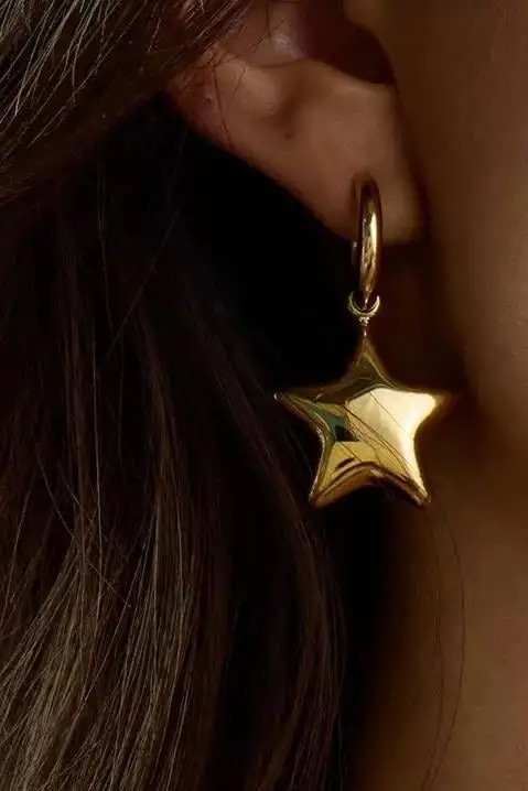Altın Renk Yıldız Figürlü Çelik Küpe (Çift)