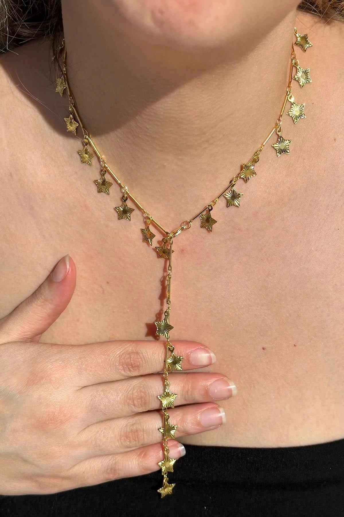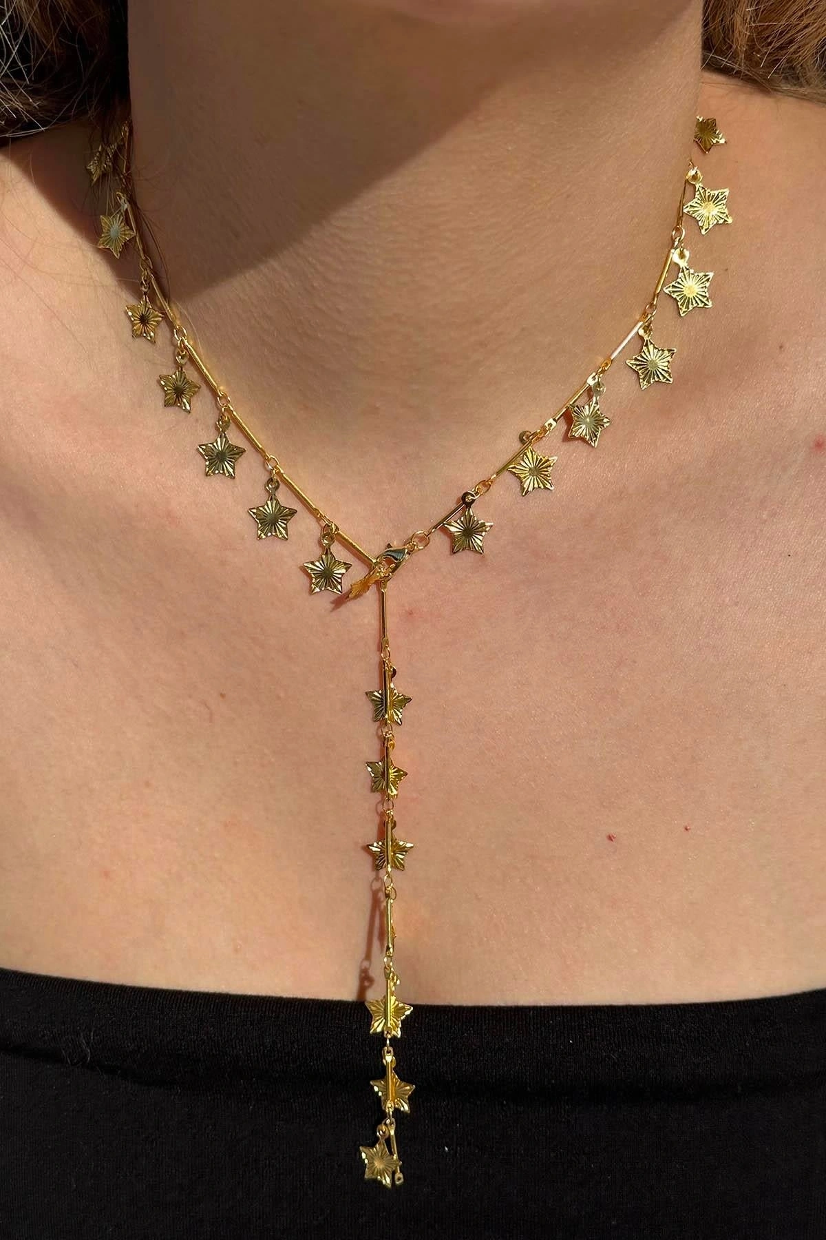 Altın Renk Yıldız Figürlü Çelik Y Kolye