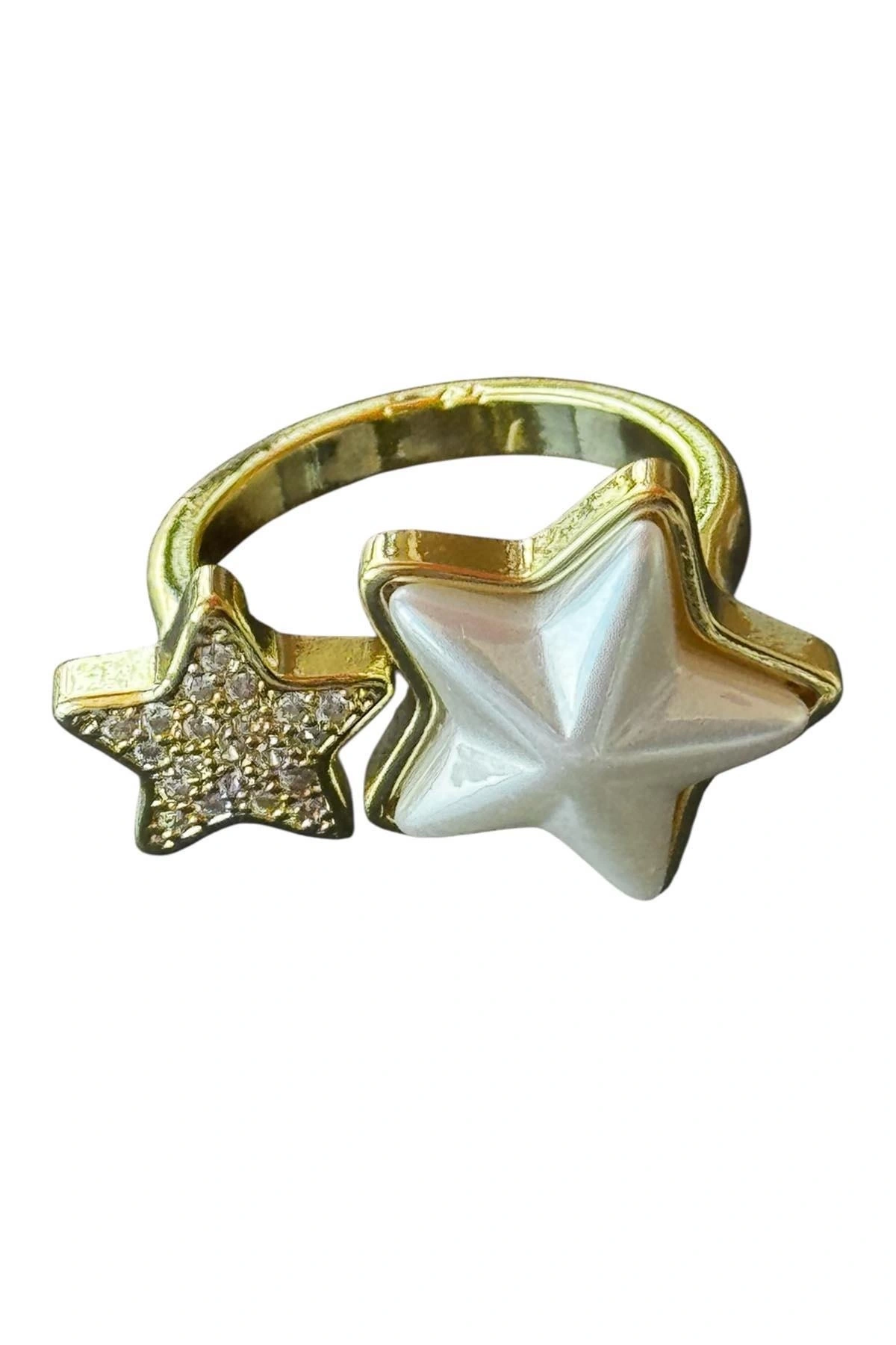 Altın Renk Yıldız Figürlü İnci Ve Taş Detaylı Ayarlanabilir Yüzük