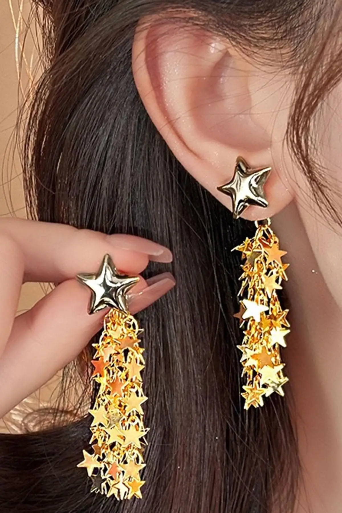 Altın Renk Yıldız Figürlü Sallantılı Küpe (Çift)