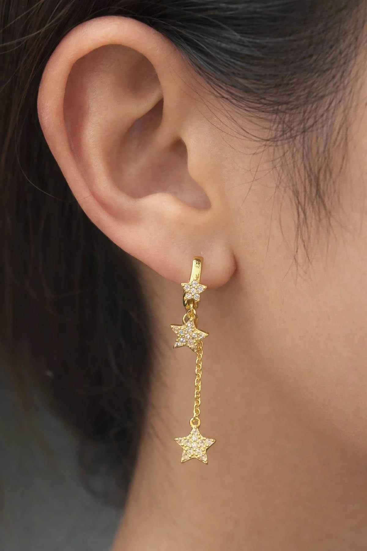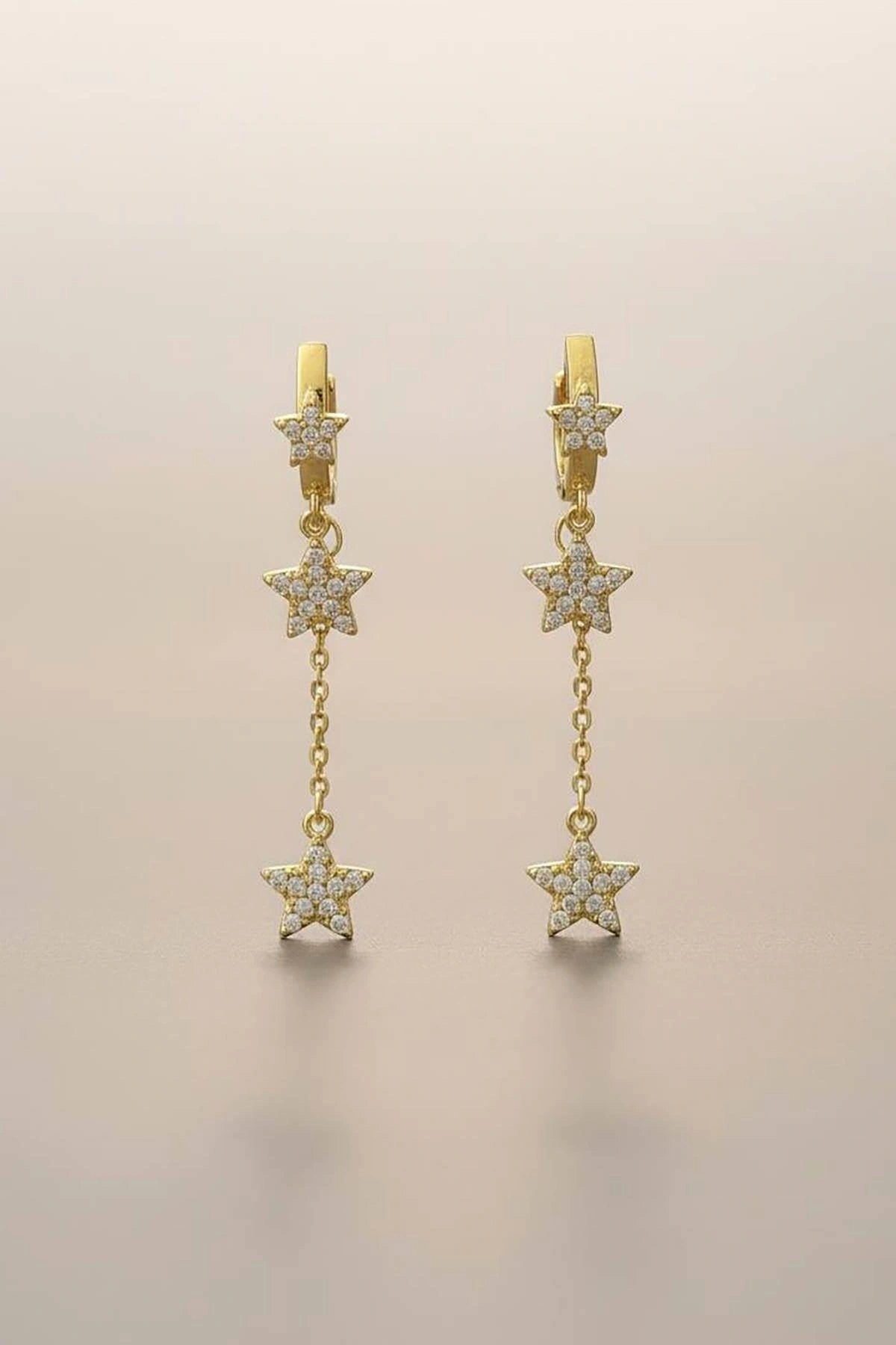 Altın Renk Yıldız Figürlü Sallantılı Küpe (Çift)