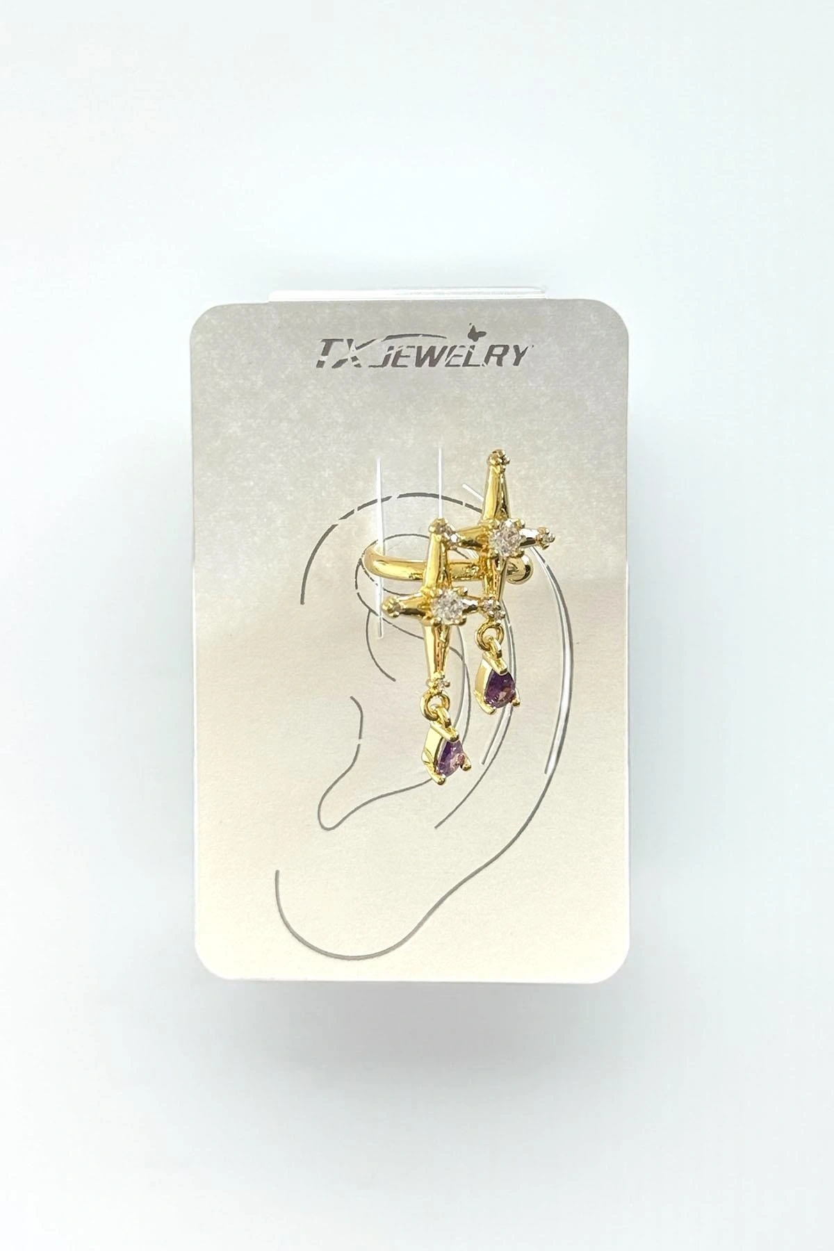 Altın Renk Yıldız Figürlü Taş Detaylı 14K Altın Kaplama TX Ear Cuff (Tek)