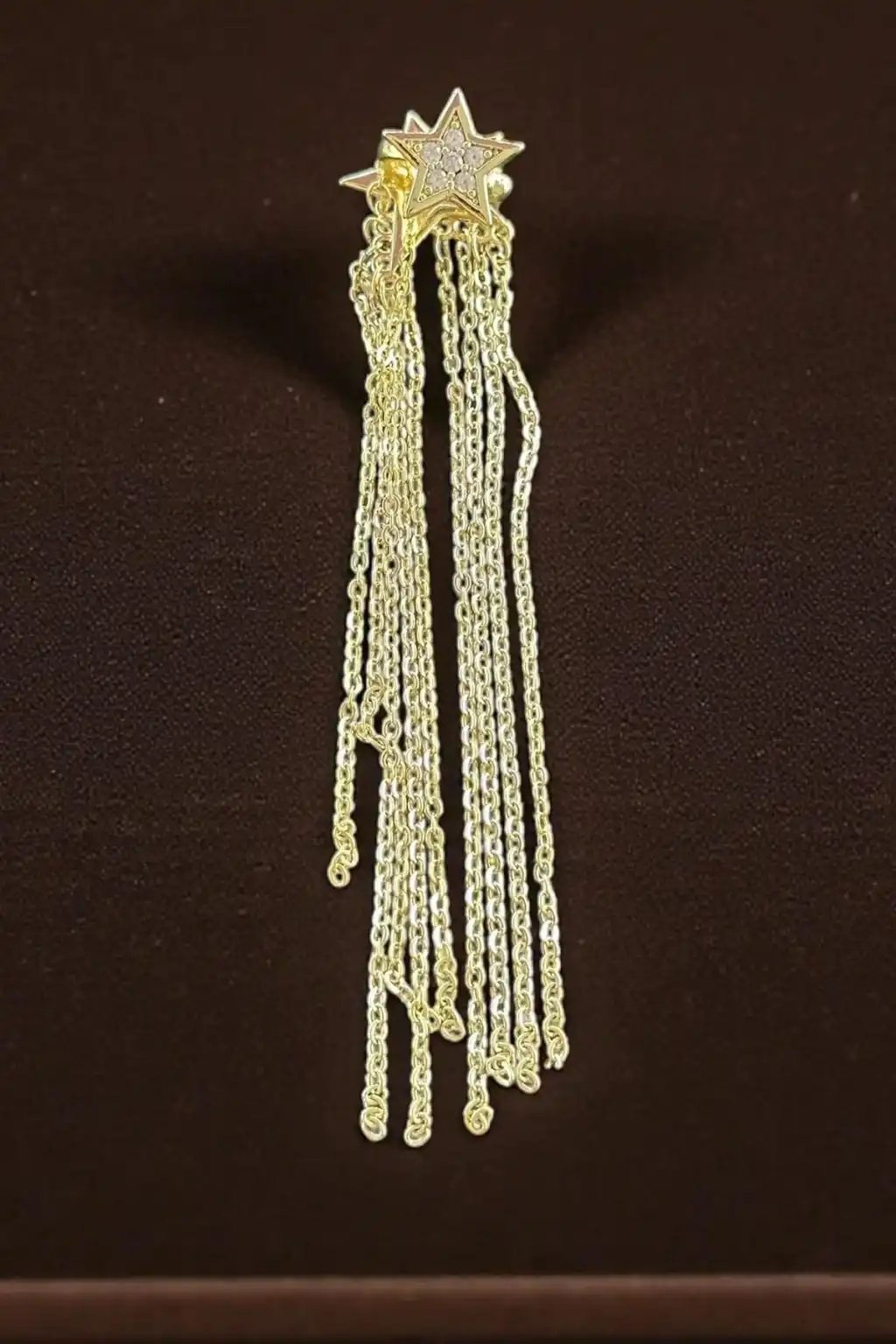 Altın Renk Yıldız Figürlü Taş Detaylı Çelik Sallantılı Ear Cuff (Tek)