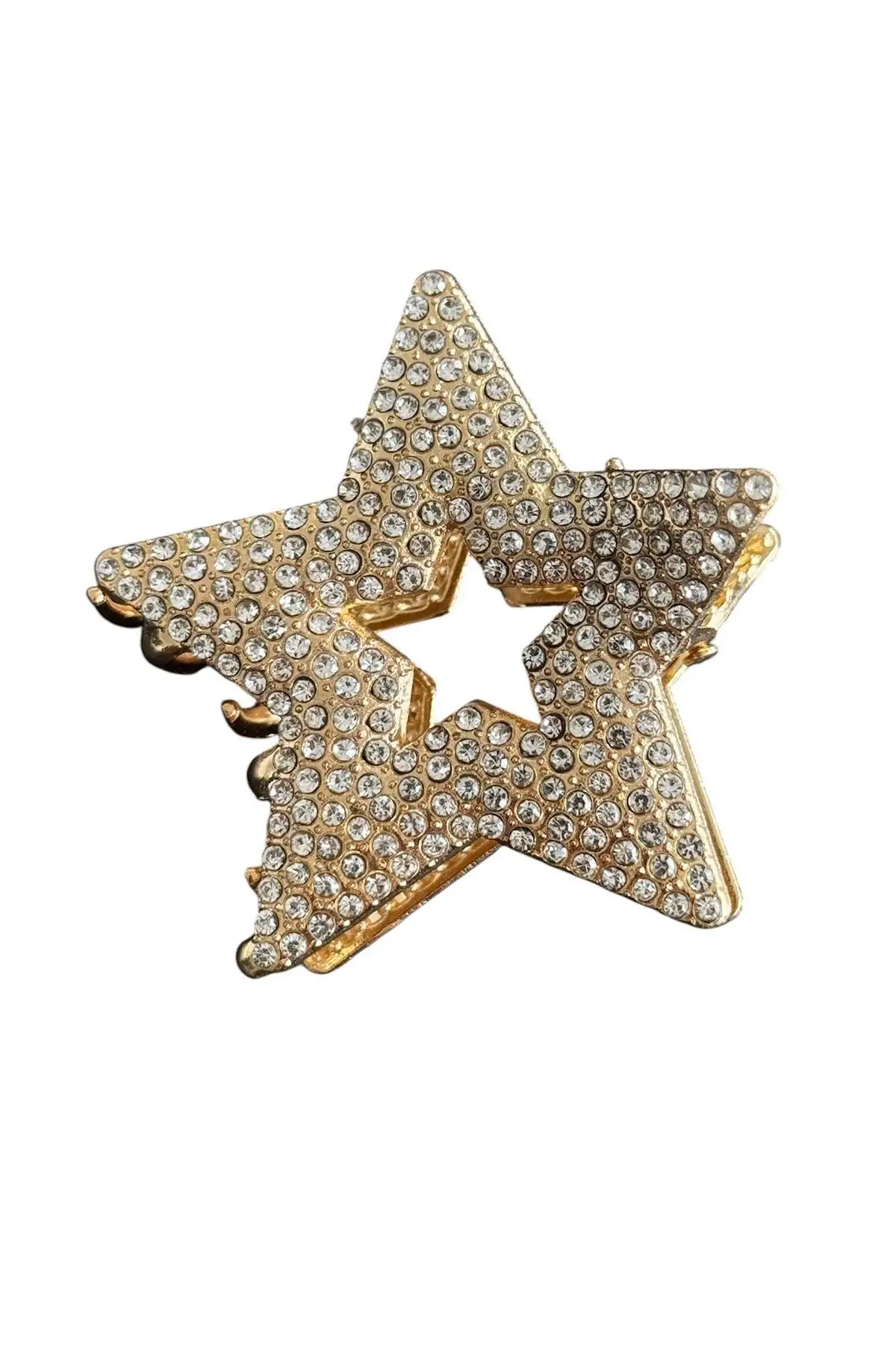 Altın Renk Yıldız Figürlü Taş Detaylı Metal Mandal Toka