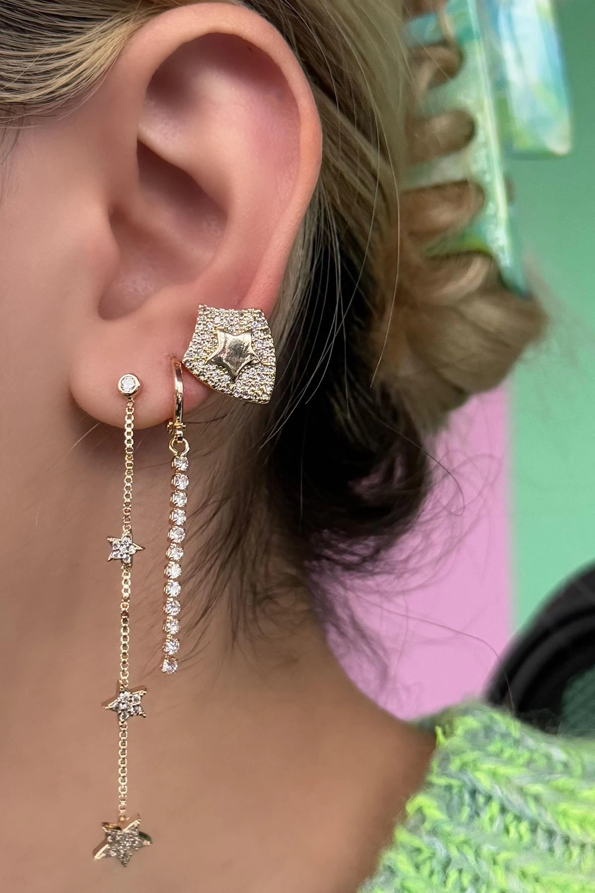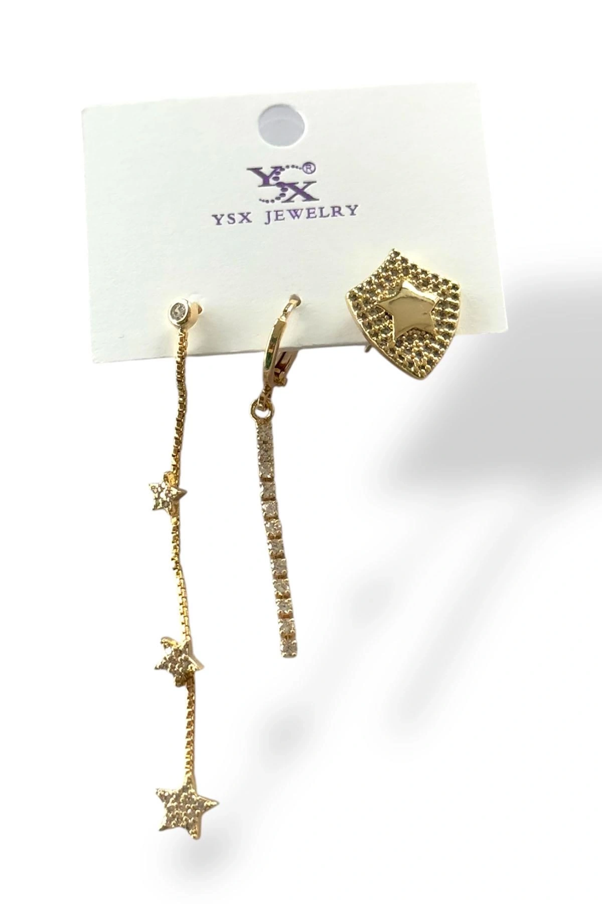Altın Renk Yıldız Figürlü Taş Detaylı VİP 3'lü YSX Küpe Set