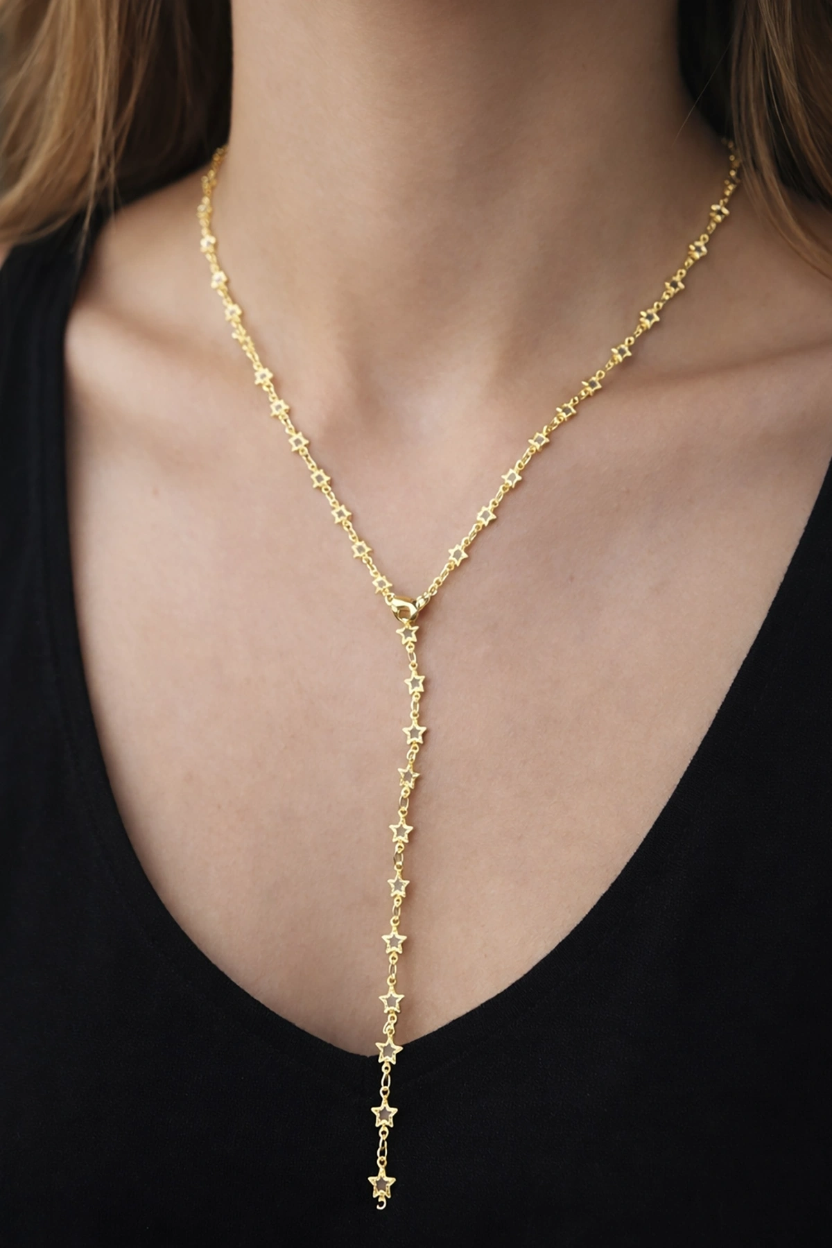 Altın Renk Yıldız Figürlü Taş Detaylı Y Kolye