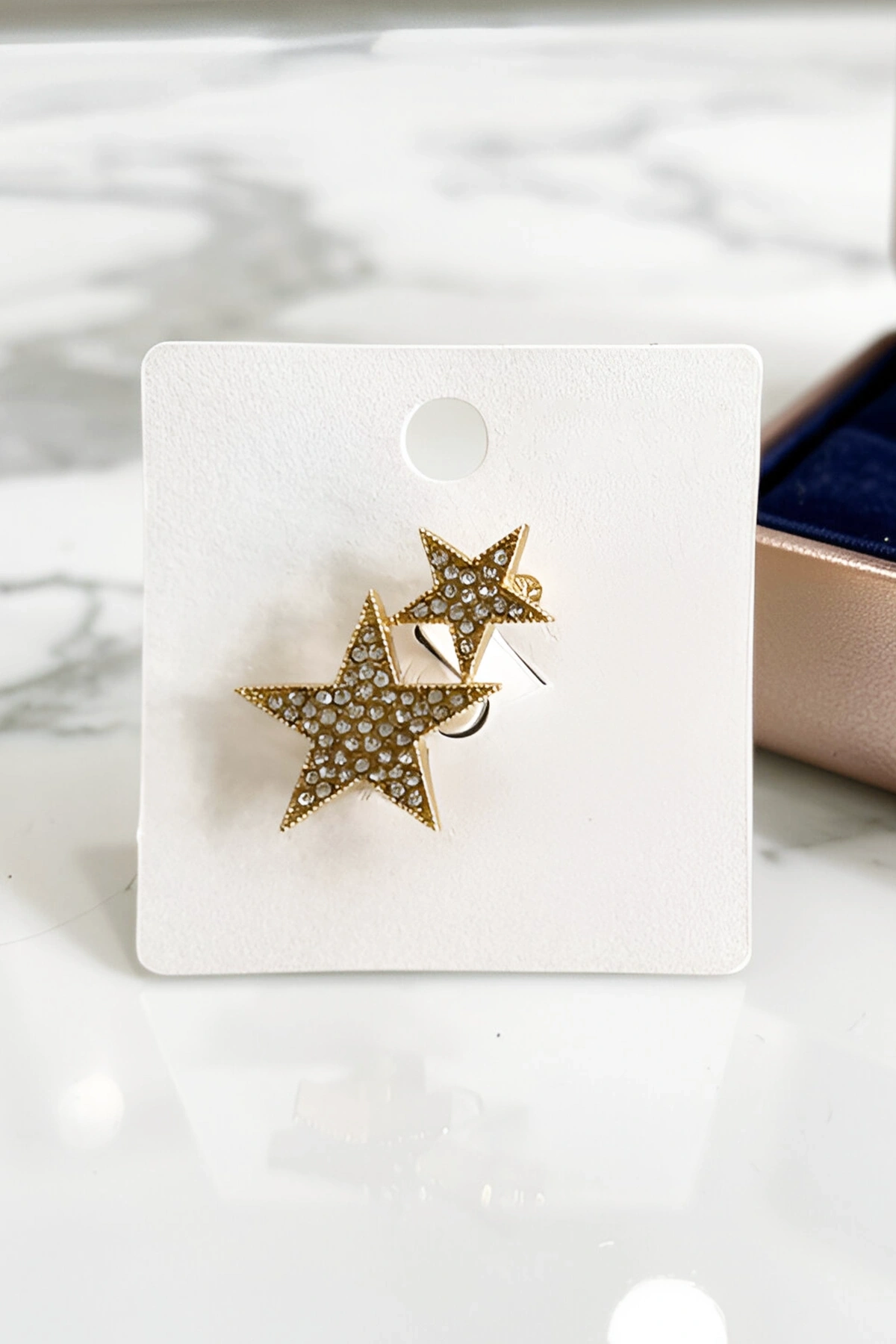 Altın Renk Yıldız Figürlü Taşlı Broş
