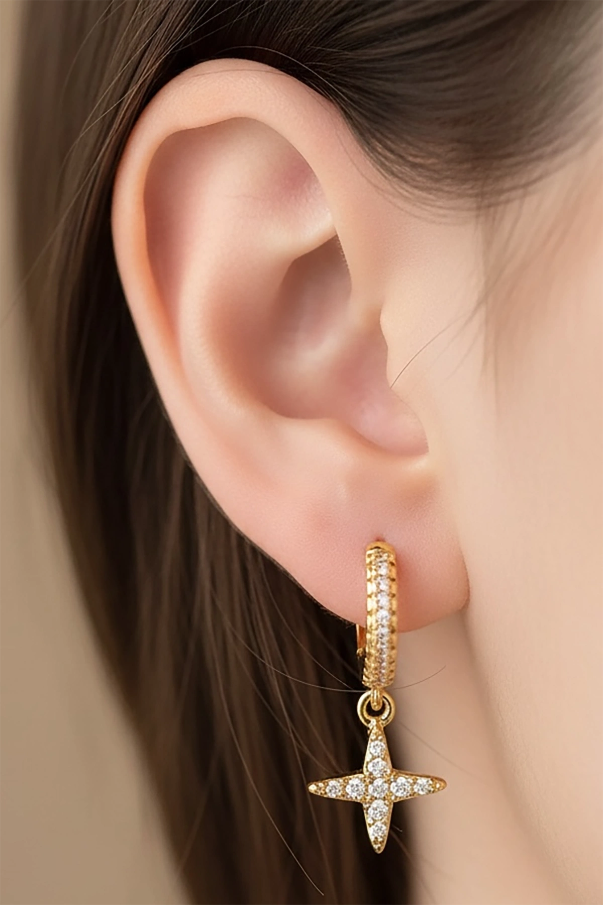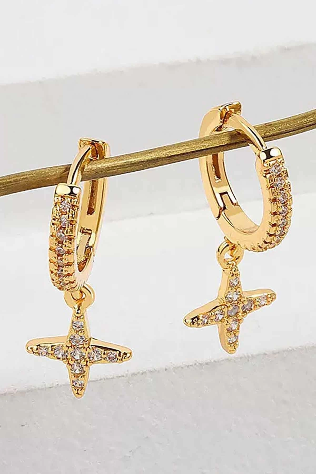 Altın Renk Yıldız Figürlü Taşlı Tx Küpe (Çift)