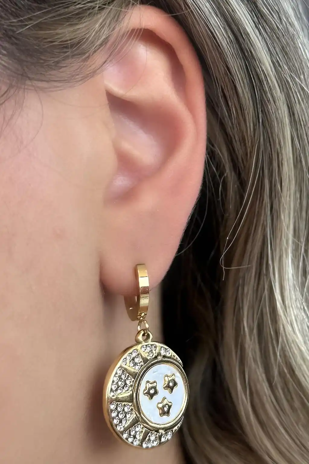 Altın Renk Yıldız Taş Detaylı Çelik Küpe (Çift)