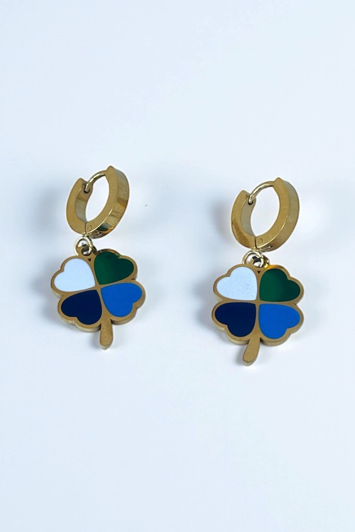 Altın Renk Yonca Figürlü Çelik Küpe (Çift)