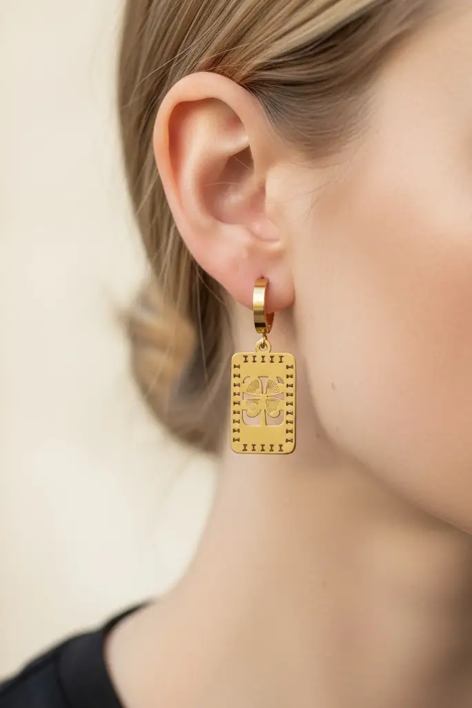 Altın Renk Yonca Figürlü Çelik Küpe (Çift)