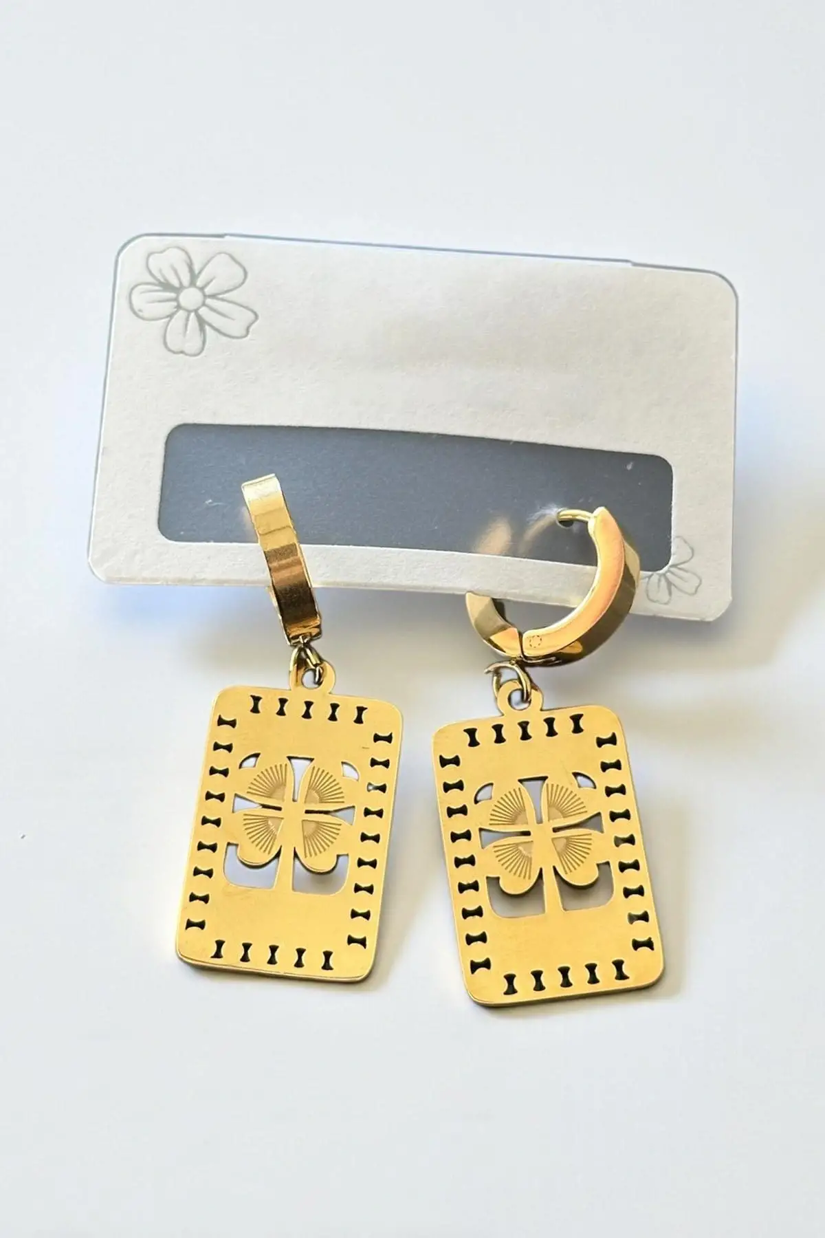 Altın Renk Çiçek Figürlü Çelik Küpe (Çift)
