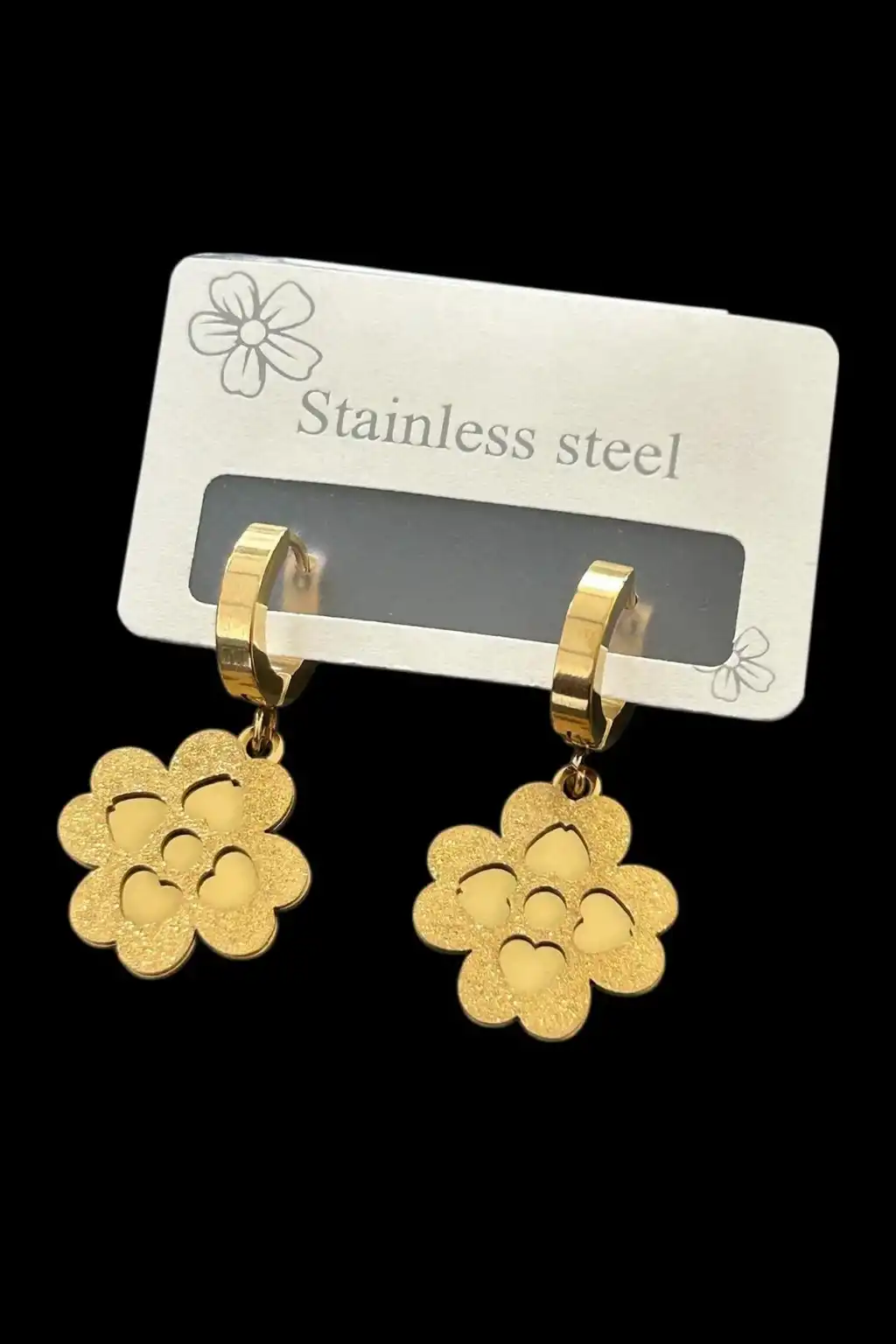 Altın Renk Yonca Figürlü Çelik Küpe (Çift)