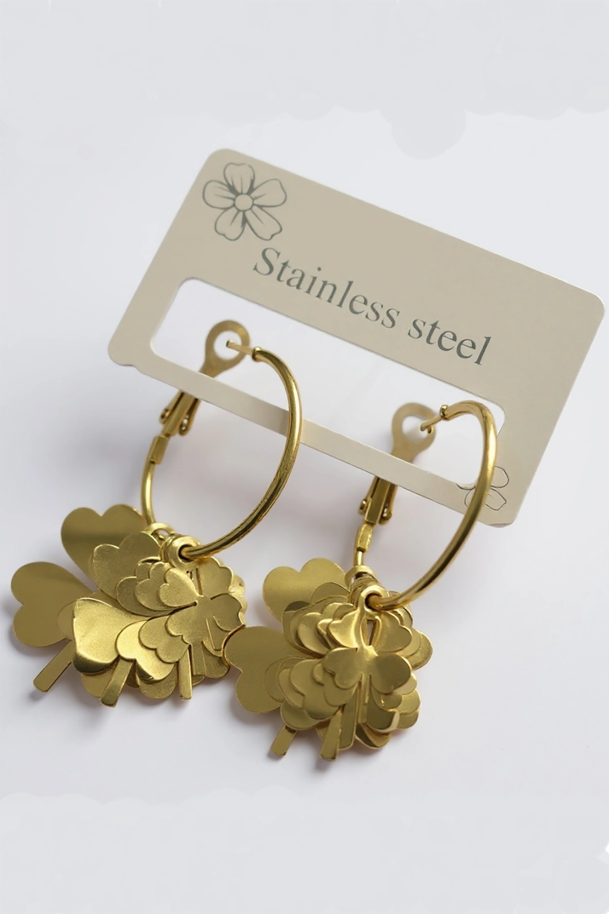 Altın Renk Yonca Figürlü Çelik Küpe (Çift)