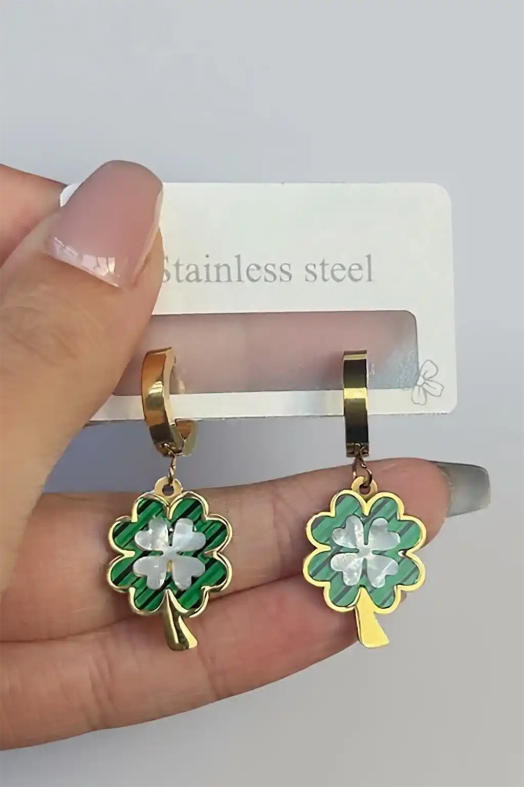 Altın Renk Yonca Figürlü Çelik Küpe (Çift)