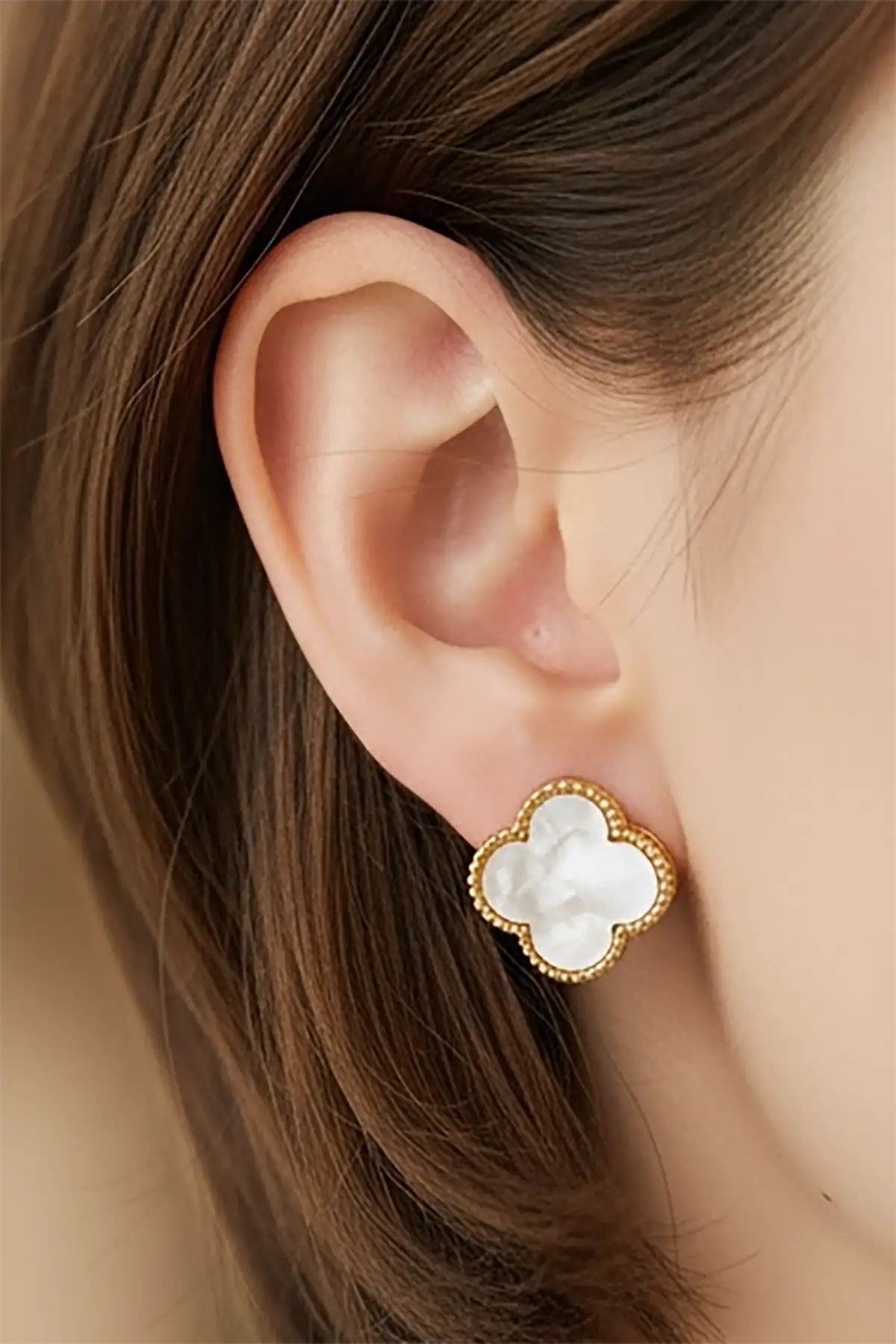 Altın Renk Yonca Figürlü Küpe (Çift)