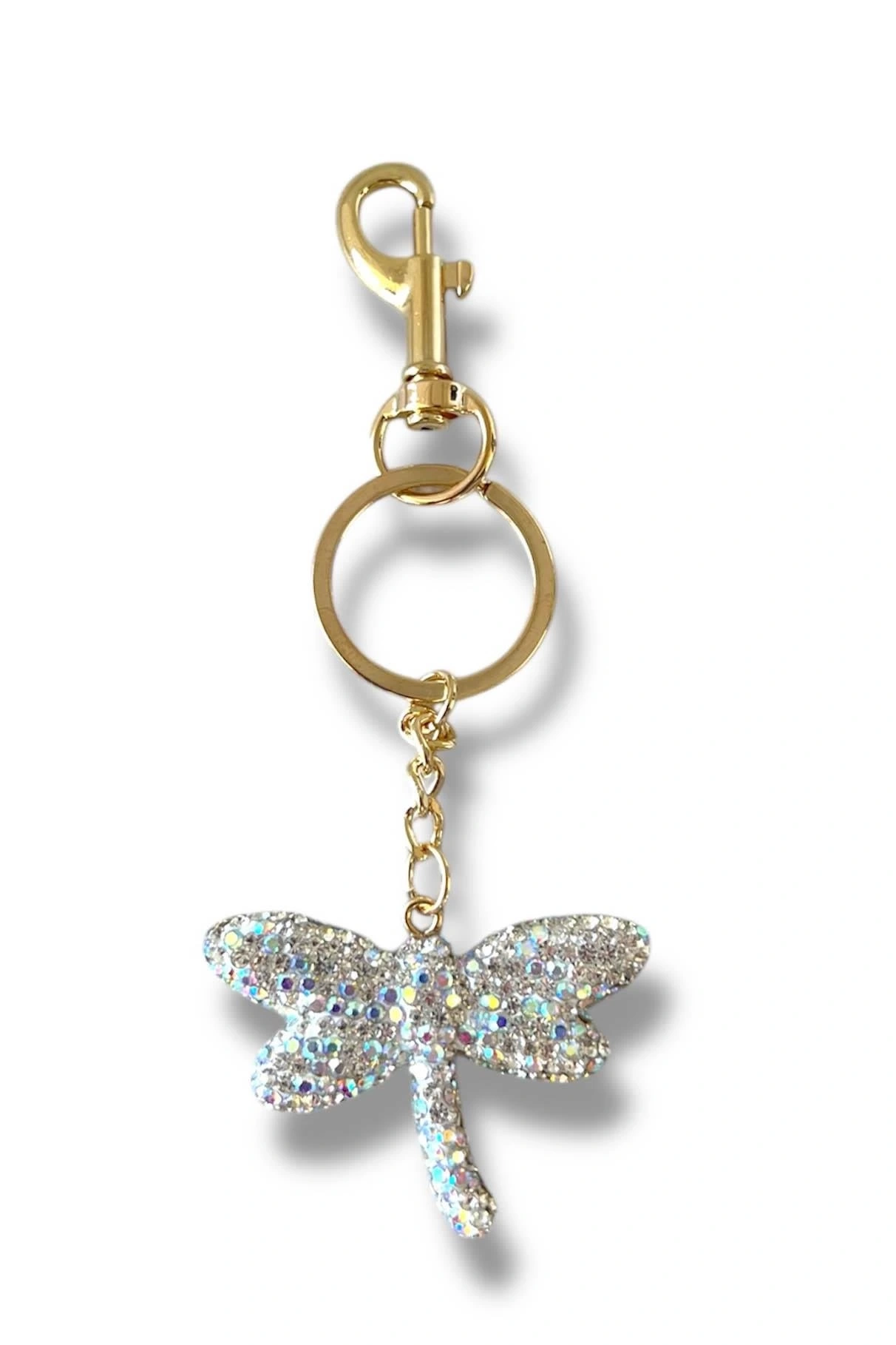 Altın Renk Yusufçuk Figürlü Gümüş Renk Taş Detaylı Çanta Charm/ Anahtarlık