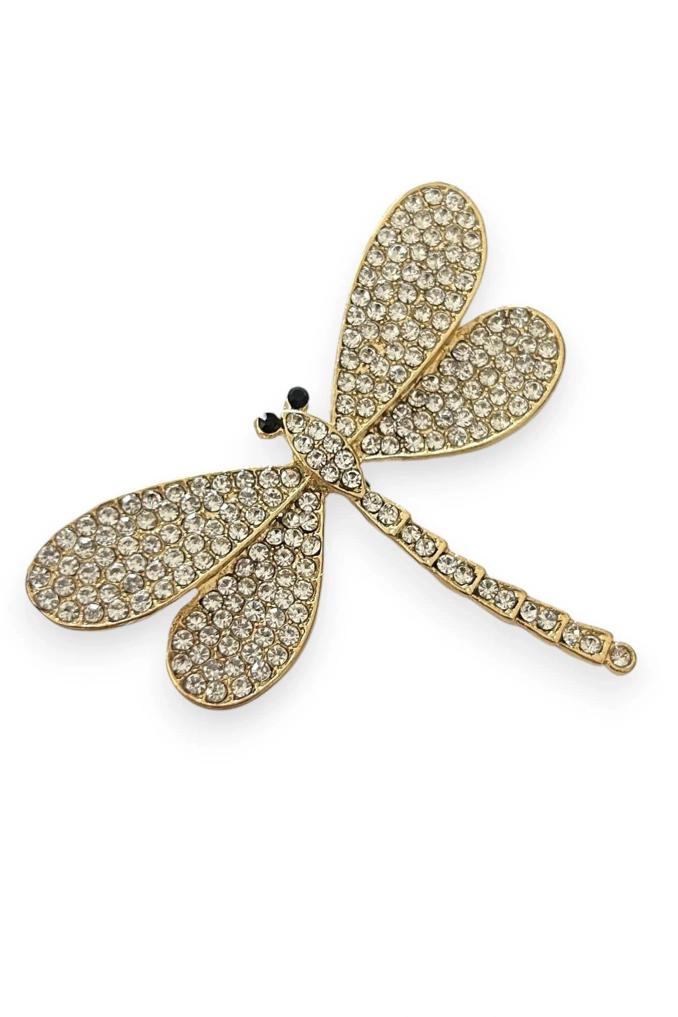 Altın Renk Yusufçuk Figürlü Taş Detaylı Broş