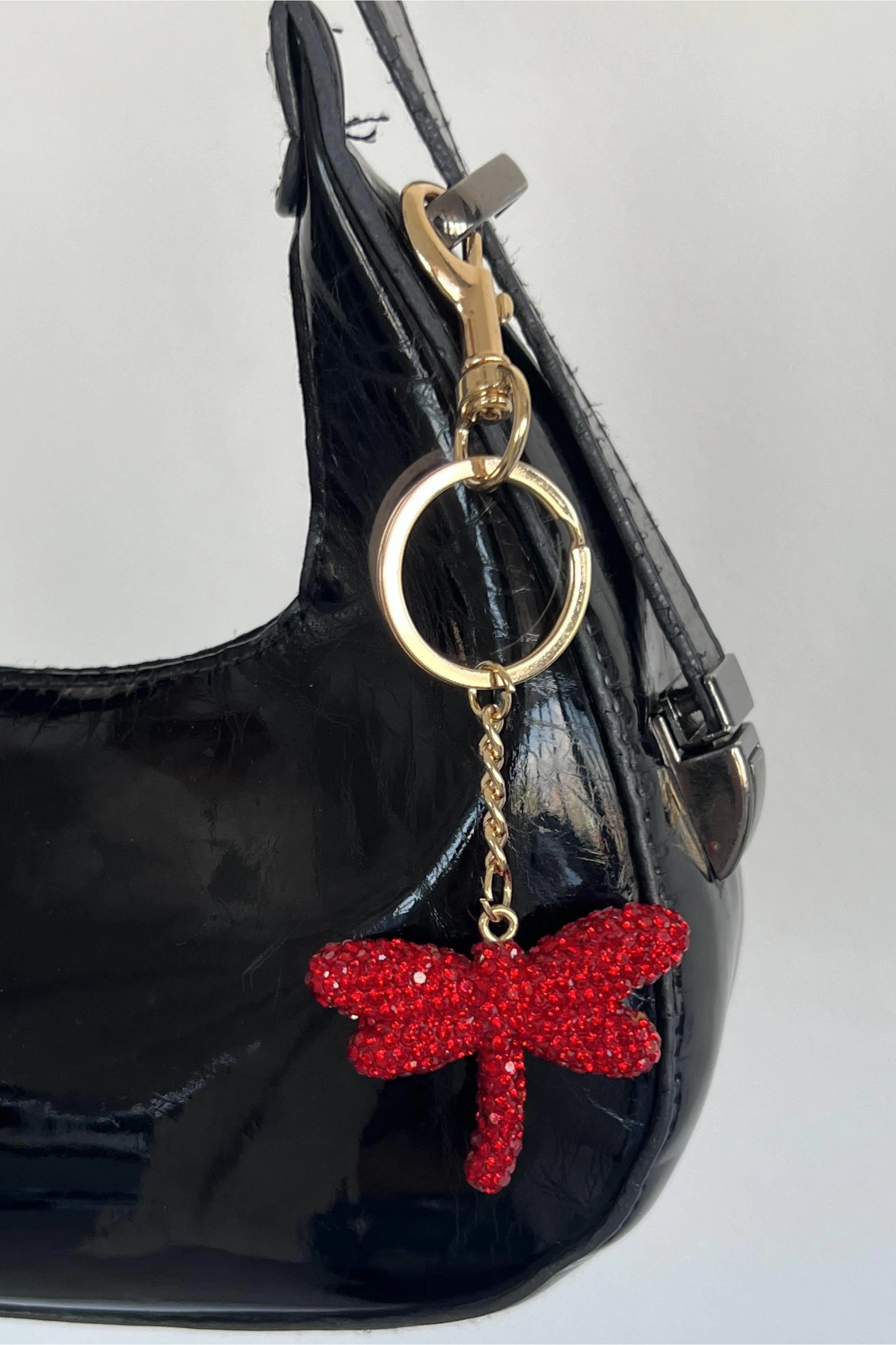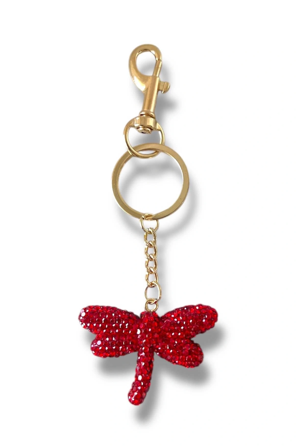 Altın Renk Yusufçuk Figürlü Kırmızı Taş Detaylı Çanta Charm/ Anahtarlık