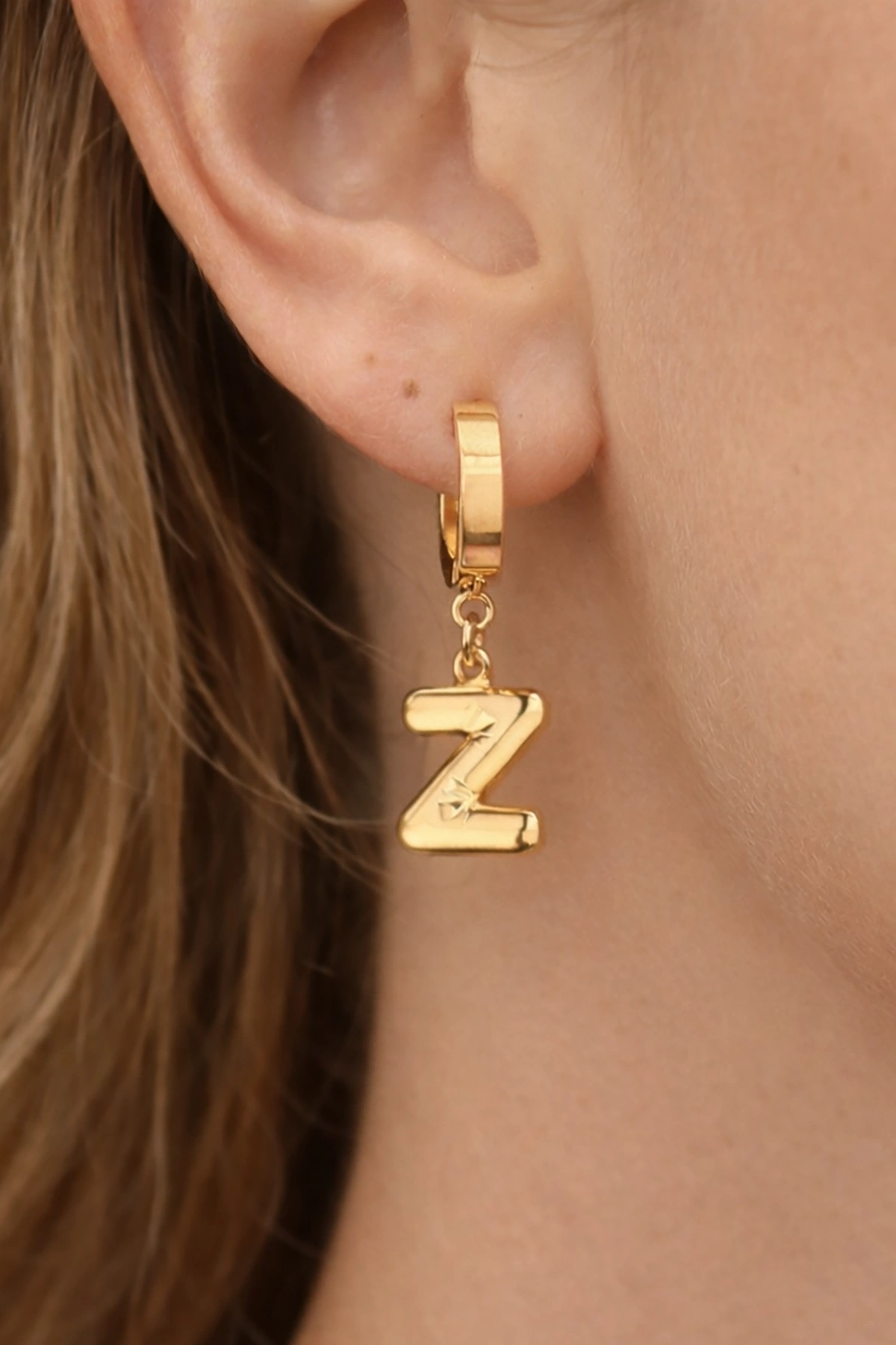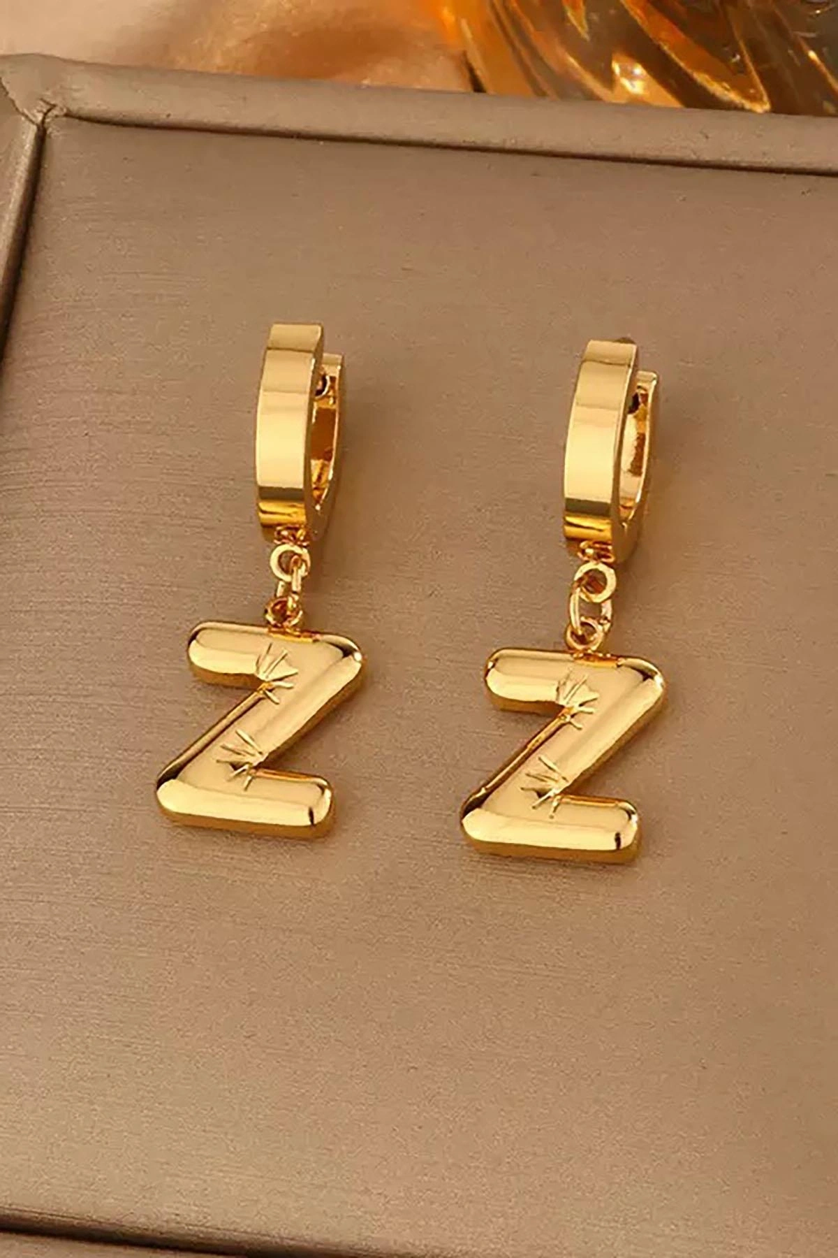 Altın Renk Z Harf Çelik Küpe (Çift)