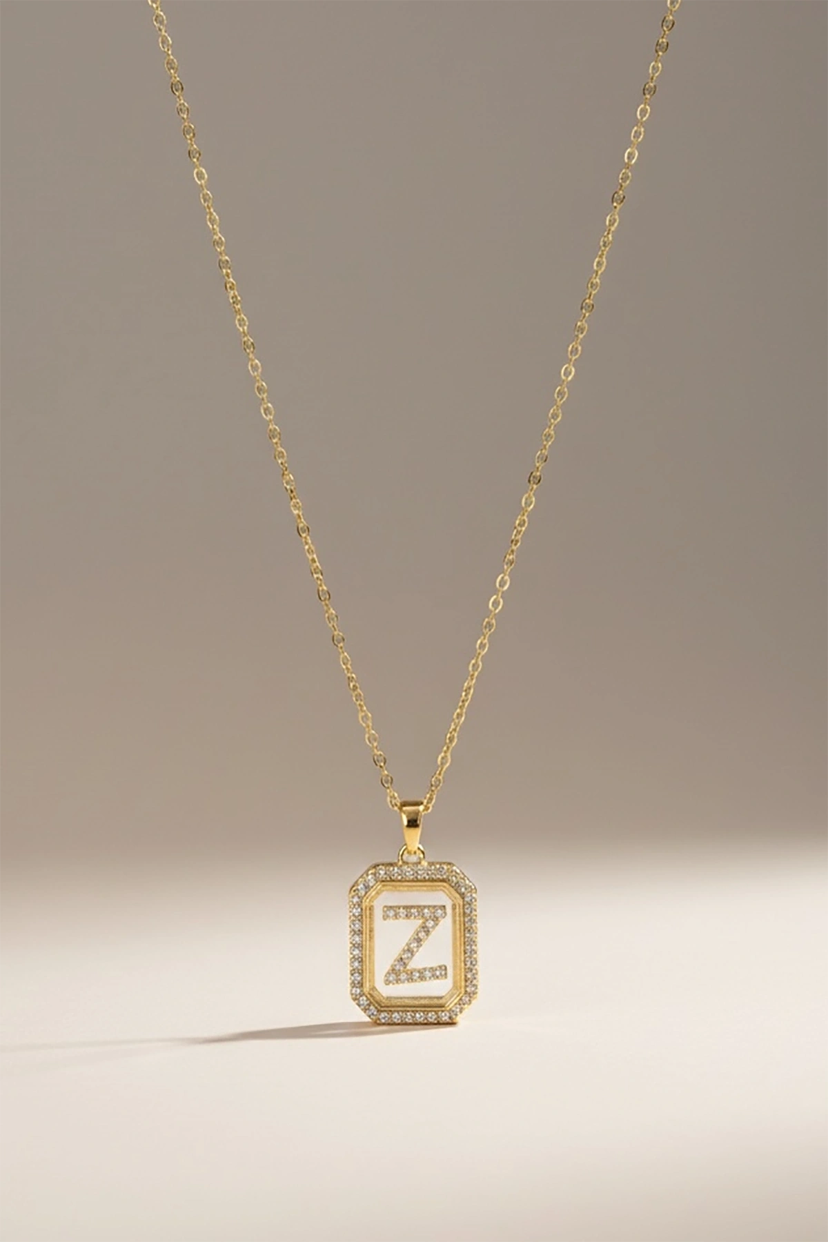 Altın Renk Z Harf Taş Detaylı Çelik Kolye