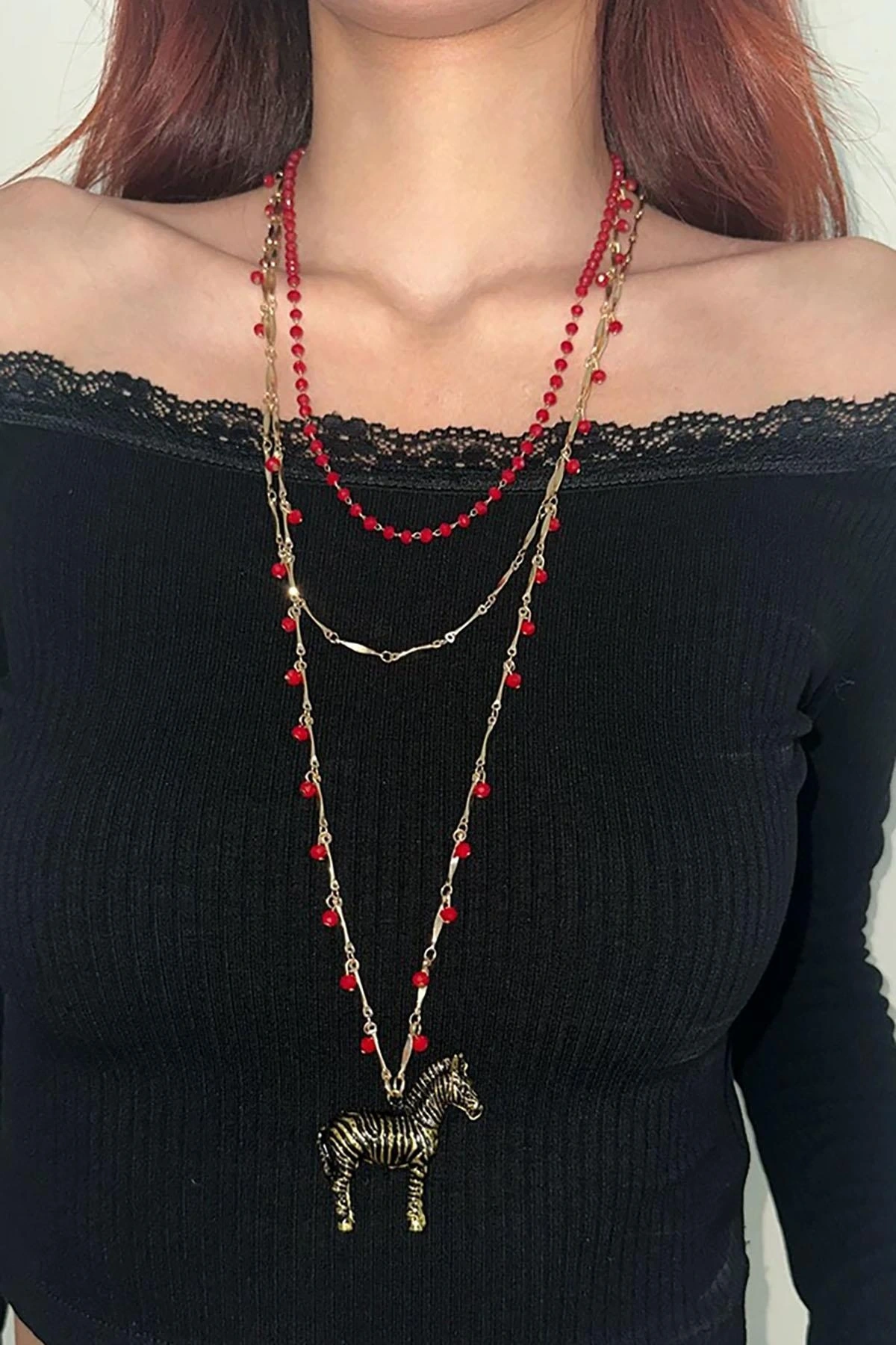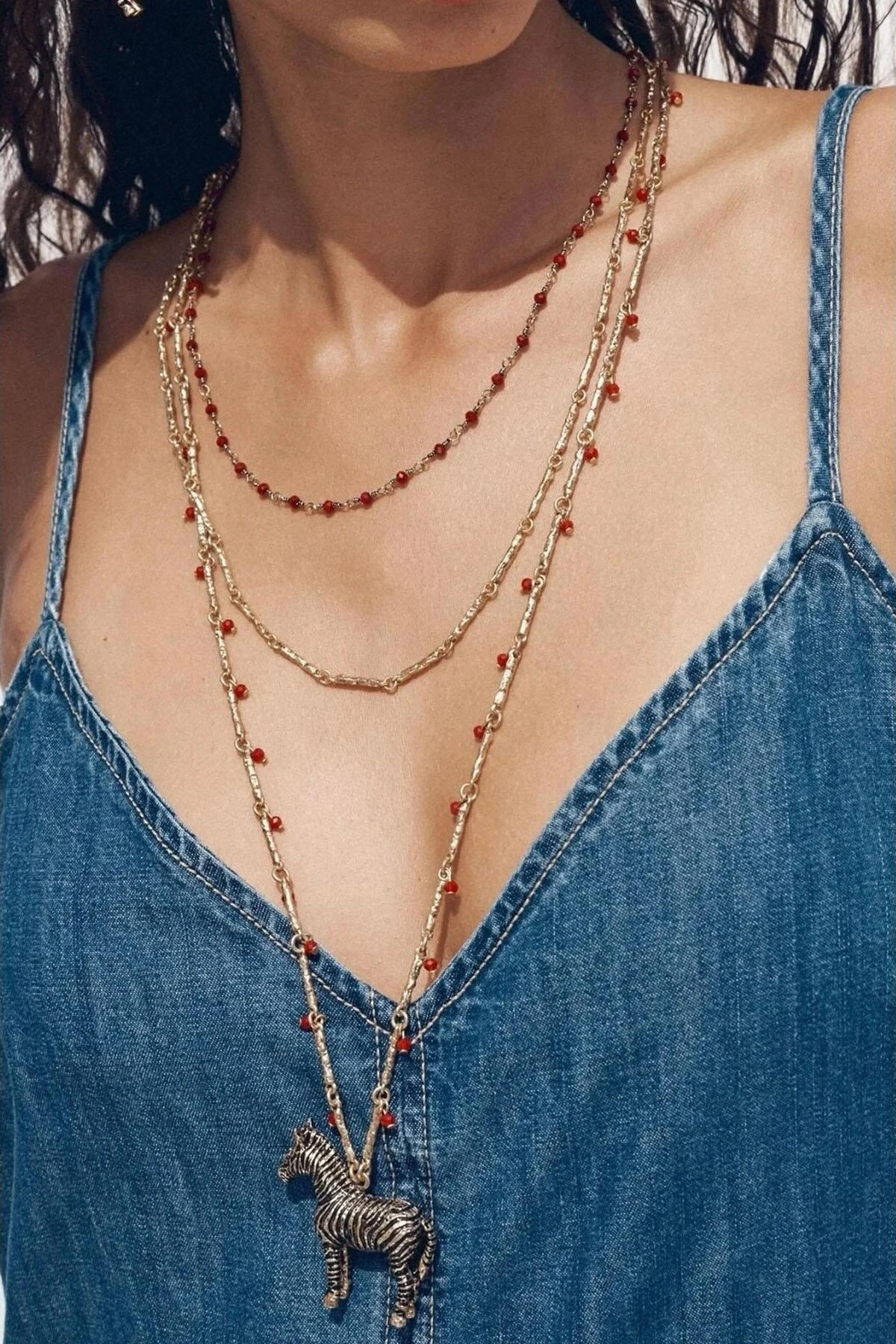 Altın Renk Zebra Figürlü Tasarım Kolye