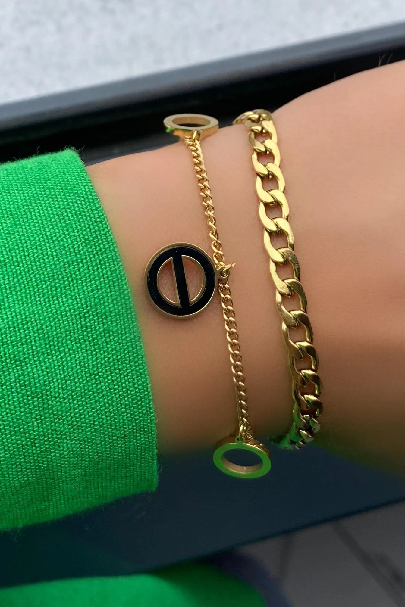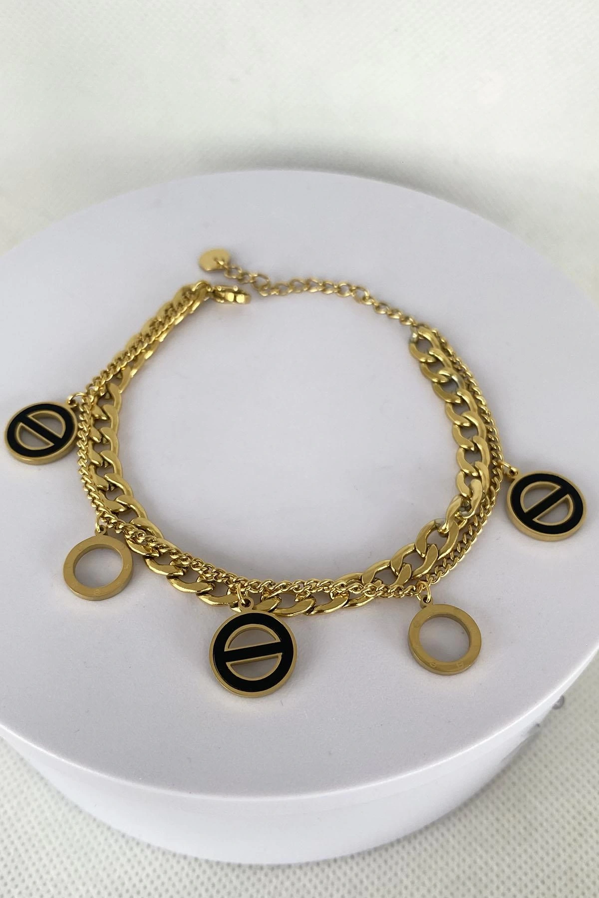 Altın Renk Zincir Detaylı Çelik Bileklik