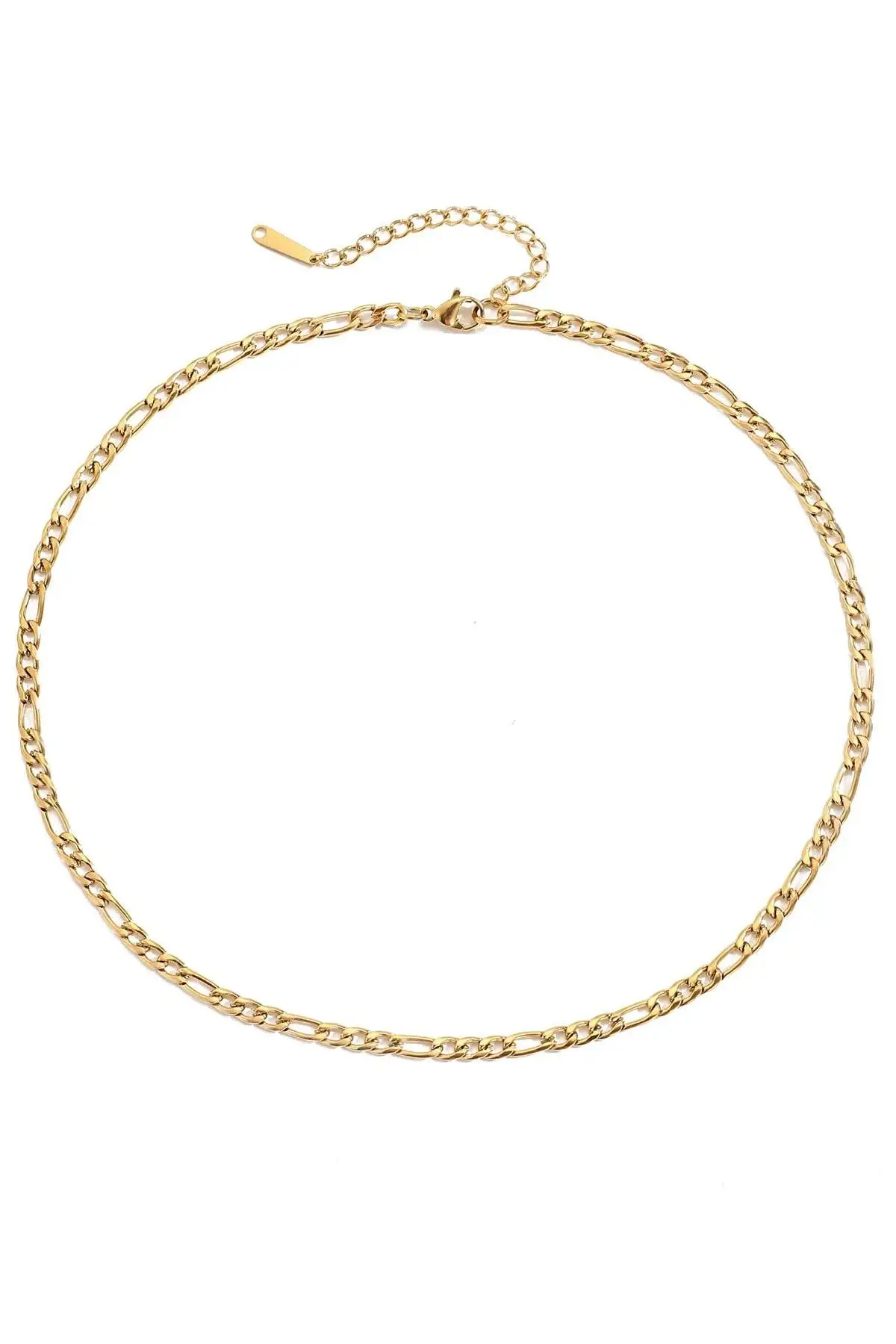 Altın Renk Zincir Detaylı Unisex Çelik Kolye