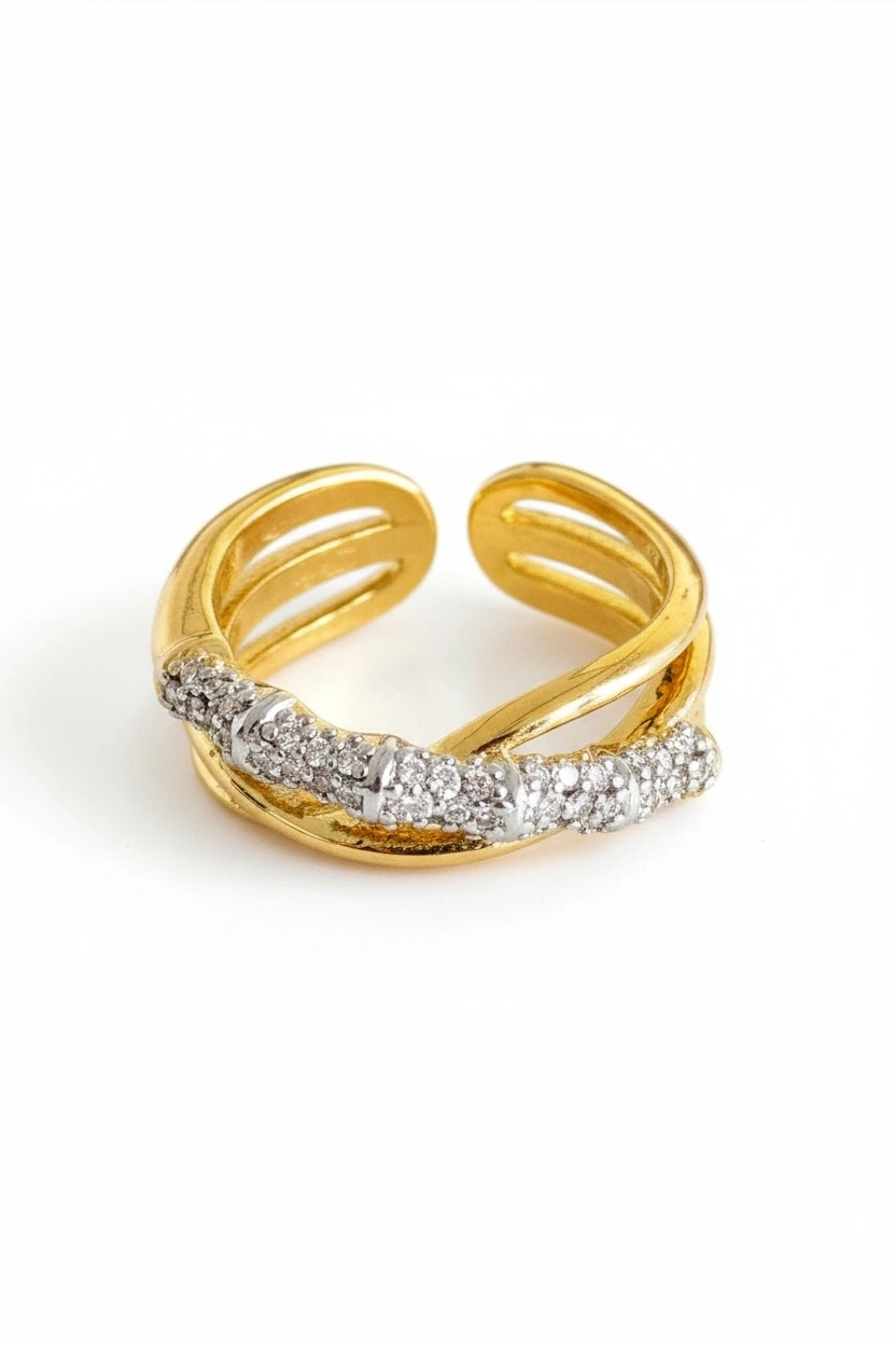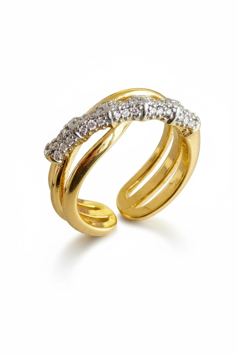 Altın Ve Gümüş Renk 14K Altın Kaplama Ayarlanabilir Yüzük