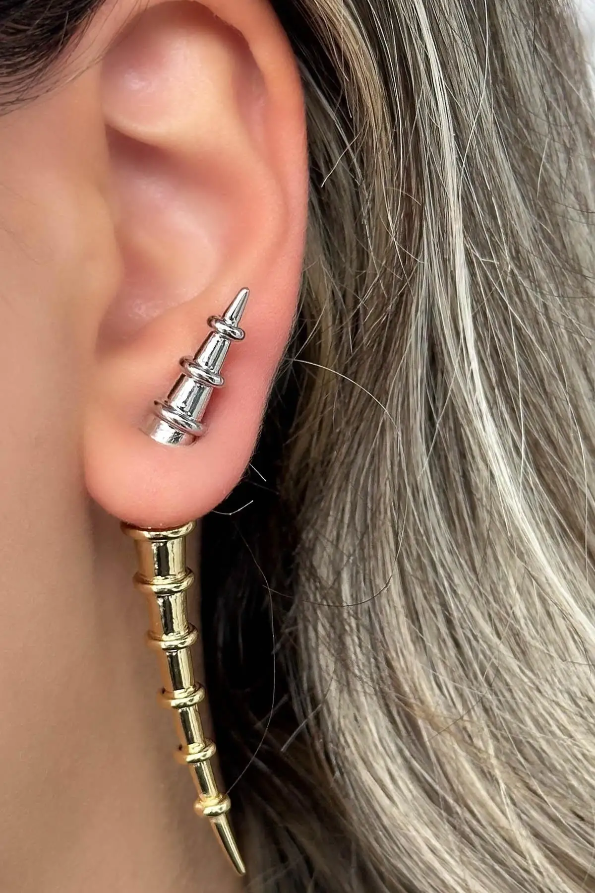 Gümüş Ve Altın Renk 14K Altın Kaplama TX Küpe (Çift)