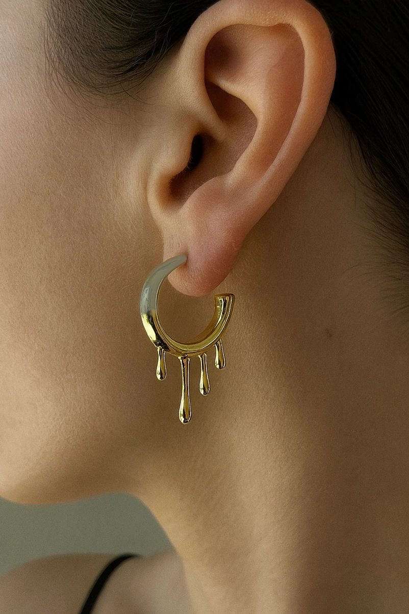 - Zarif tasarımıyla dikkat çeken bu çift küpe, altın rengi detaylarıyla göz alıcı bir görünüm sunar.