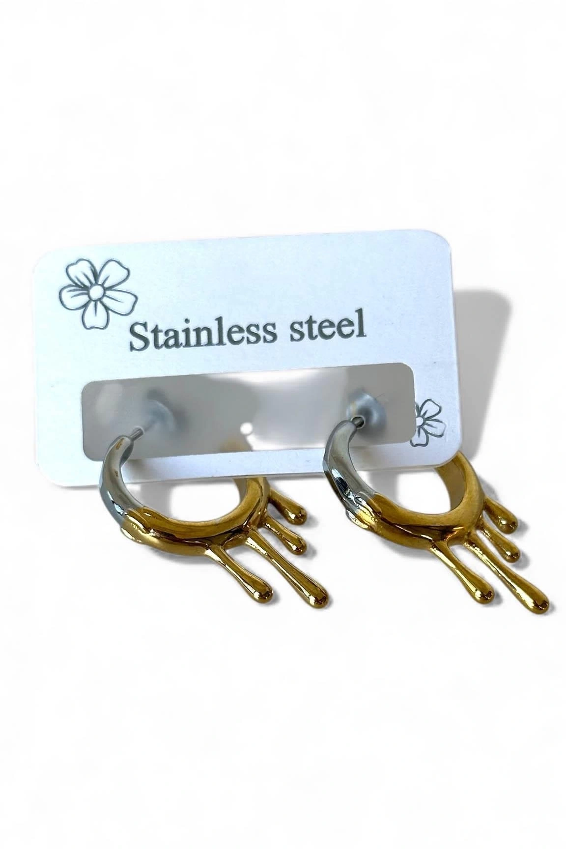 Altın Ve Gümüş Renk Çelik Küpe (Çift)