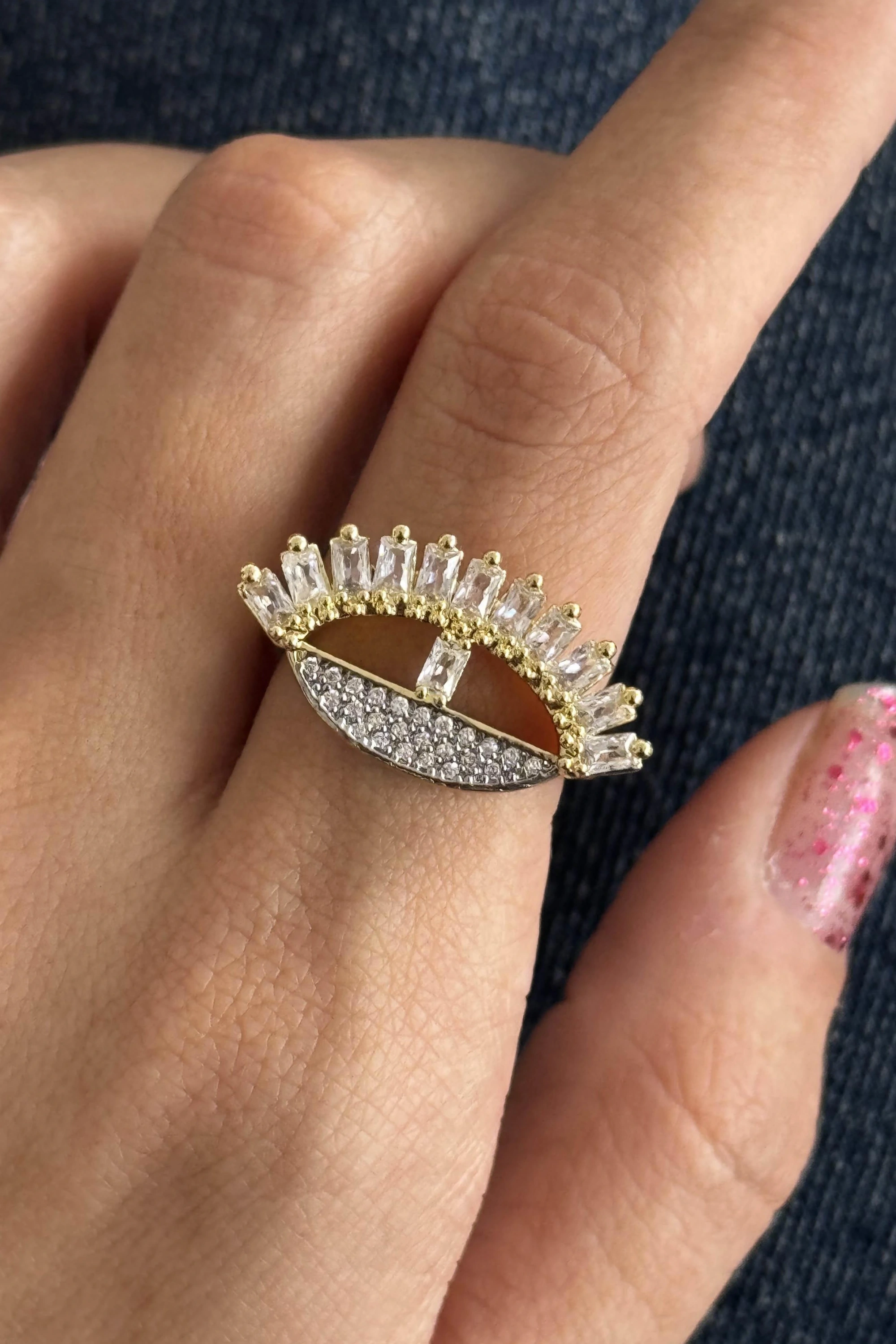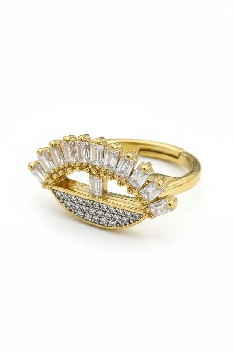 Altın Ve Gümüş Renk Göz Detaylı 14K Altın Kaplama Ayarlanabilir Yüzük