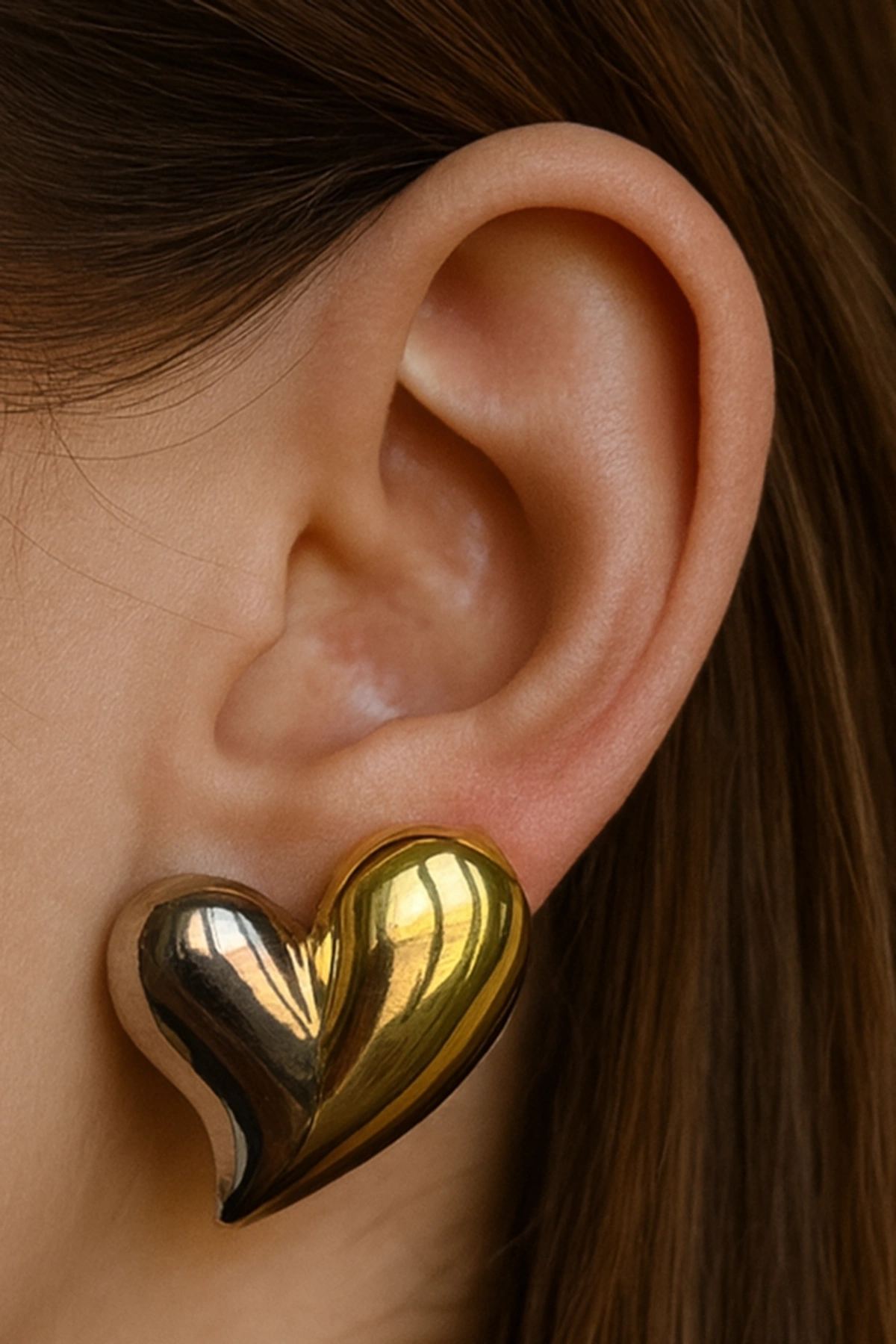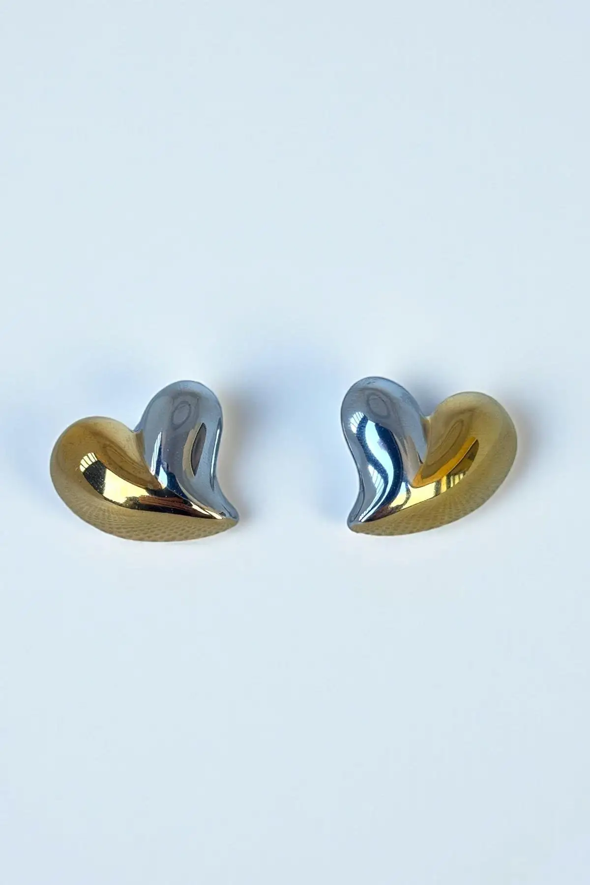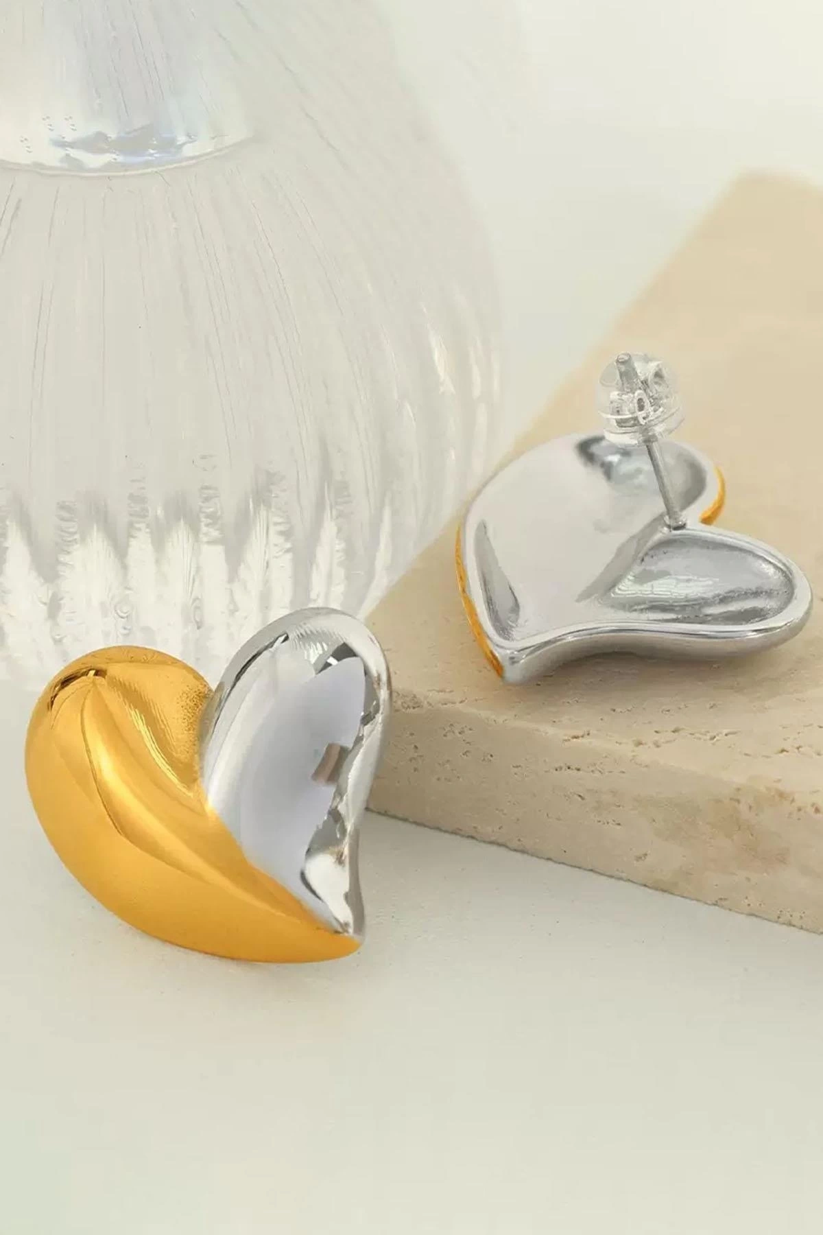 Altın Ve Gümüş Renk Kalp Figürlü Çelik Küpe (Çift)