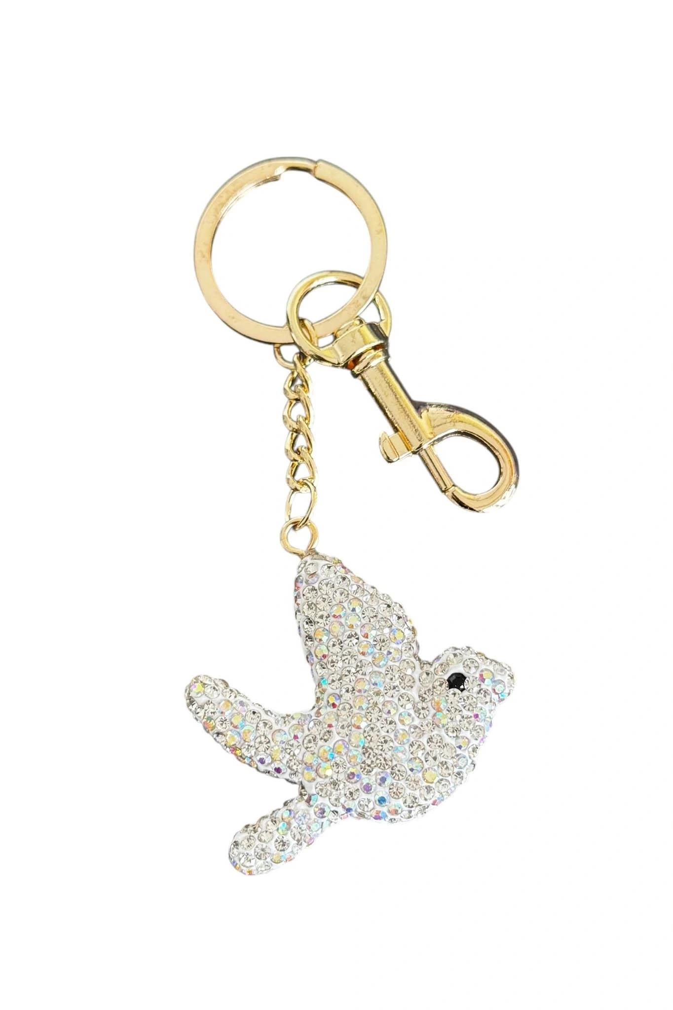 Altın Ve Gümüş Renk Kuş Figürlü Taş Detaylı Çanta Charm/ Anahtarlık