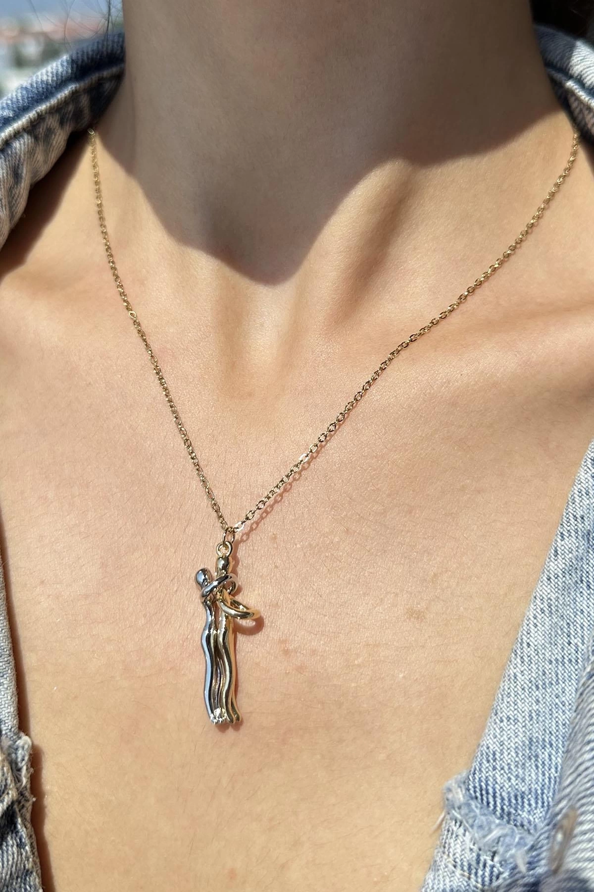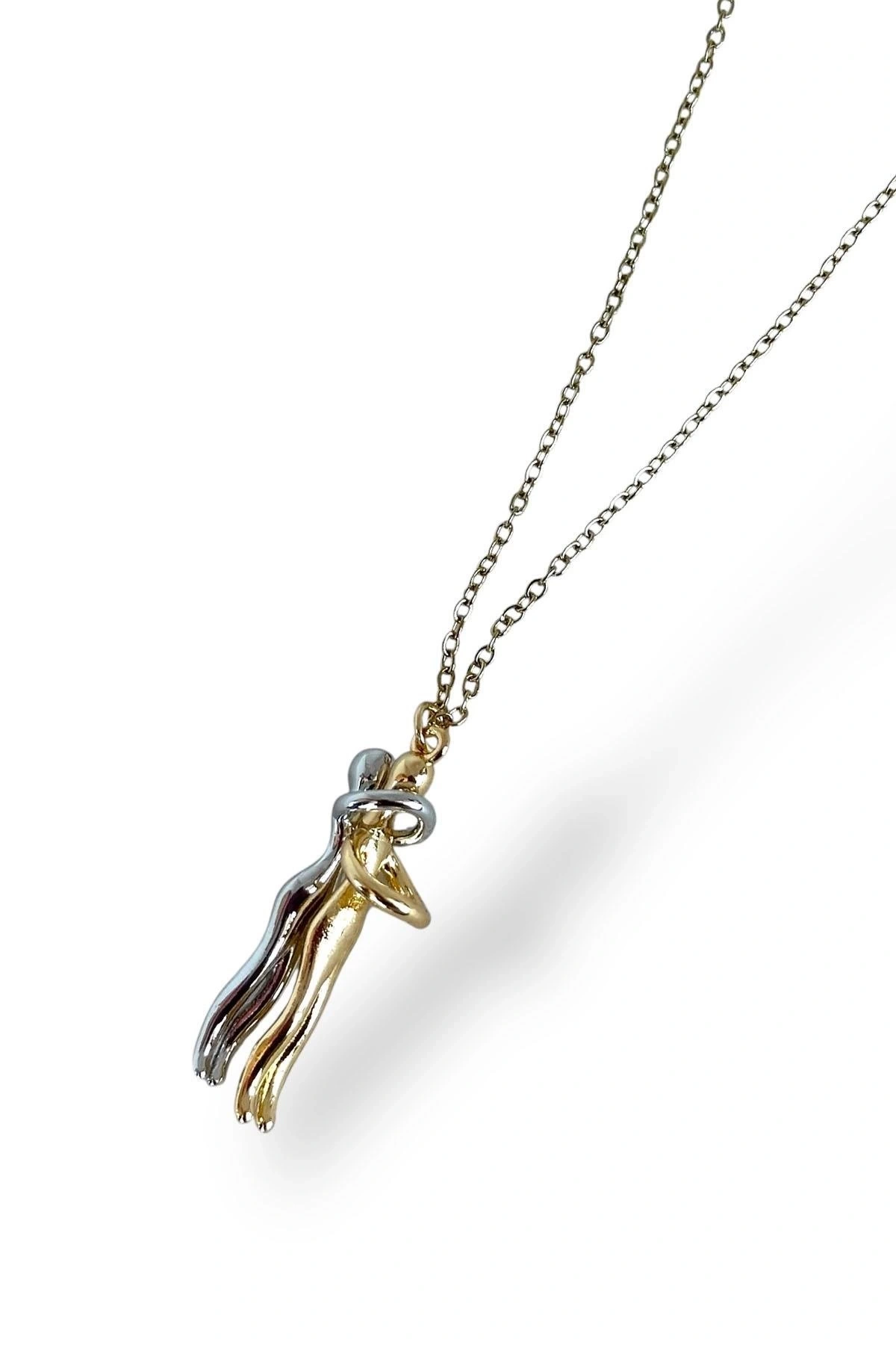 Altın Ve Gümüş Renk Sarılan Çelik Çift Kolyesi