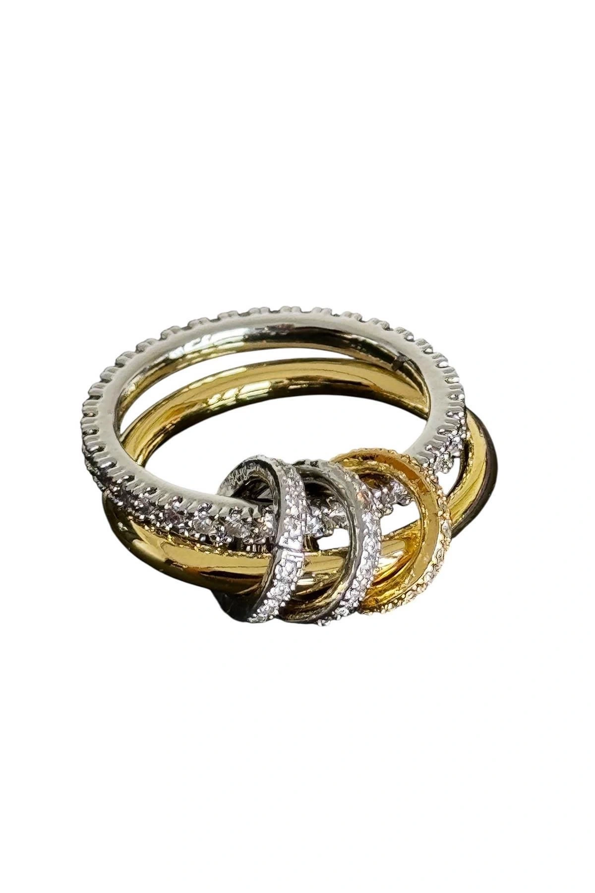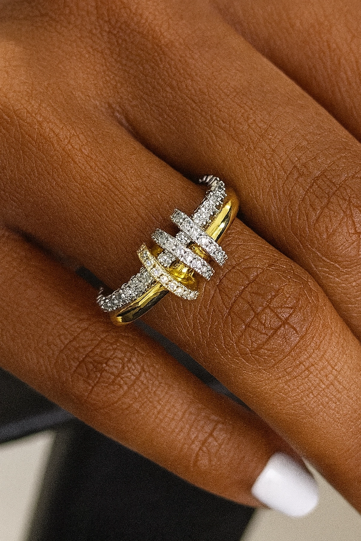 Altın Ve Gümüş Renk Taş Detaylı Yüzük