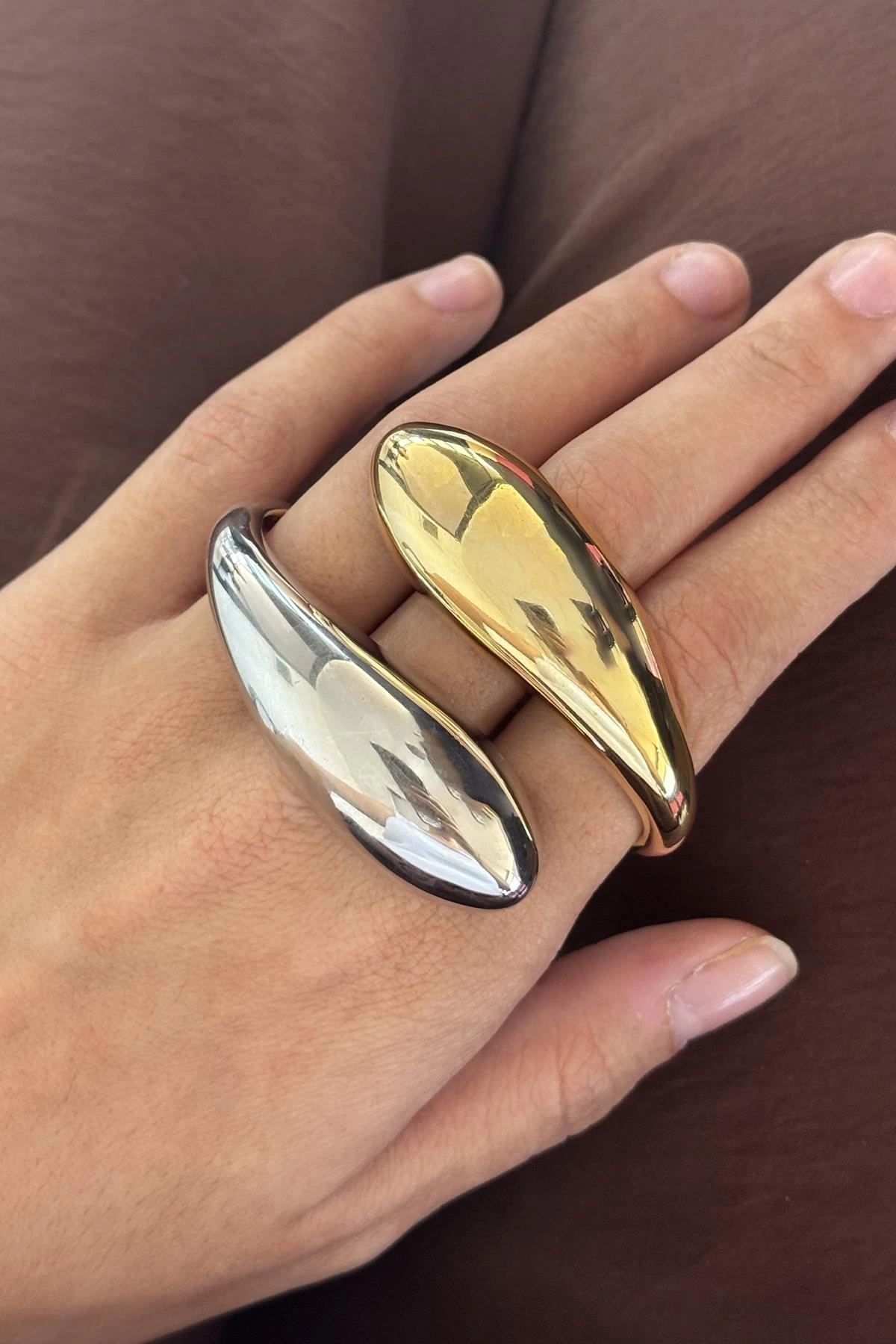 Altın Ve Gümüş Renk Üç Parmak Tasarım Yüzük
