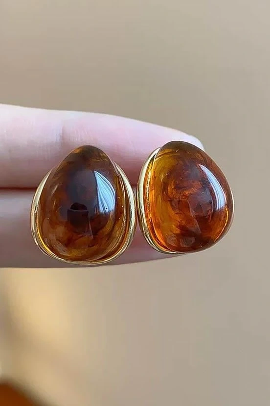 Altın Ve Kahve Renk Taş Detaylı Küpe (Çift)
