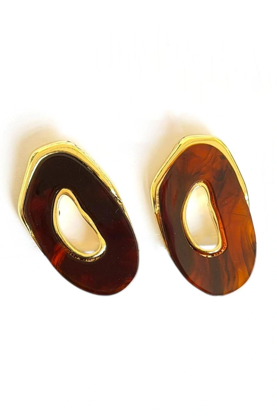 Altın Ve Kahve Renk Taş Detaylı Küpe (Çift)